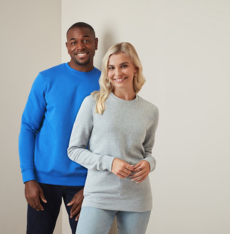 Unisex, krčná lemovka so vzorom rybej kosti, polmesiacová podsádka na krku, 1x1 rebrovaný úplet na rukávoch, krku av páse s elastanom, 3-vrstvová kvalitná teplákovina, povrch zo 100% bavlny, vo vnútri česaná, štítok TearAway, neutrálny veľkostný štítok,