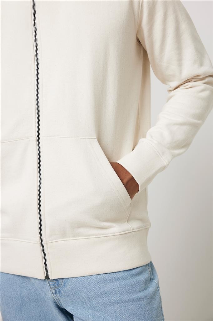 Unisex mikina Iqoniq so zapínaním na zips v prevedení regular fit. Dvojvrstvová kapucňa, dlhé rukávy, 1x1 rebrovanie pri golieri, spodnom leme a manžetách. Príjemný mäkký česaný fleece na vnútornej strane. Zloženie: 100% bavlna (50% recyklovaná, 50% organická), 340 g/m2. Obsah recyklovaných a organických materiálov je garantovaný vďaka využitiu špeciálnej technológie AWARE™, ktorá kombinuje možnosť skenovania materiálu a technológiu blockchain. Každý produkt Iqoniq vlastní unikátny štítok s QR kódom, ktorý odkazuje na príslušný digitálny pas produktu. 2% z výťažku každého predaného kusu je darovaných na Water.org. Certifikované OEKO-TEX® STANDARD 100. Povaha recyklovaného materiálu môže mať vplyv na farebnosť alebo výskyt nečistôt v textile.