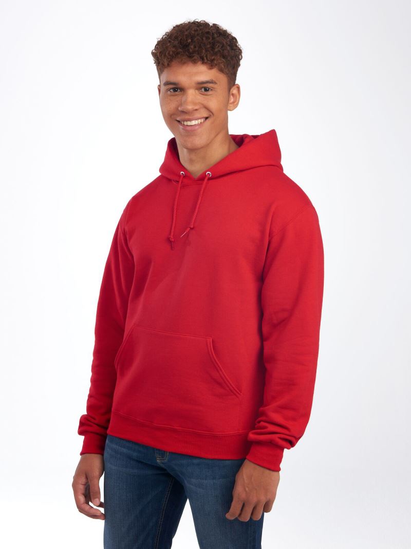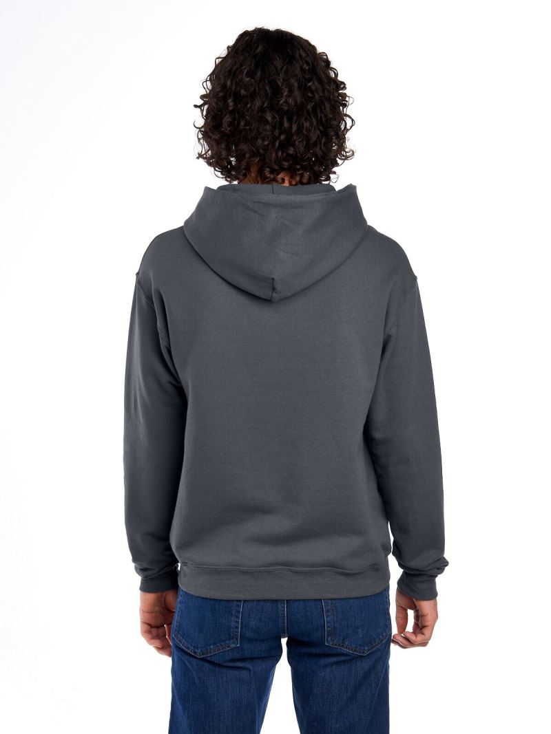 2-vrstvová kapucňa s kovovými očkami a šnúrkou, 1x1 rebrované manžety a lem, klokanie vrecko, dvojité švy na krku, rukávoch a v páse, vysoká hustota, 2-vrstvová kvalitná teplákovina, predpraná proti zrážaniu, NuBlend® Antipilling, vyrobené z certifikovanej bavlny COTTON USA™, štítok TearAway. Materiál: 271g/m2, 50% polyester, 50% certifikovaná bio bavlna.