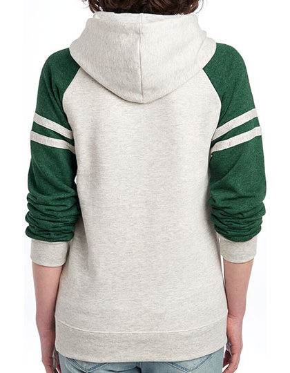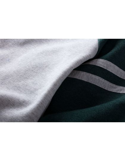 Predzrážaný 2-koncový flís NuBlend® odolný voči žmolkovaniu | Vyrobené z bavlny pestovanej v USA, z udržateľných zdrojov | Vysoká hustota stehu pre hladké plátno na potlač | Body v béžovej a fialovej farbe pre retro, ale súčasne moderný vzhľad | Kontrastné raglánové rukávy | Pruhy inšpirované univerzitnými športovými klubmi na rukávoch | Predné vrecko | 1 x 1 rebrované manžety a pás (manžety ladia s univerzitnými pruhmi) | Otočené o štvrtinu, čo eliminuje stláčanie | Odtrhávací štítok.