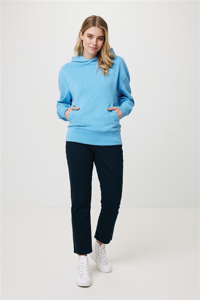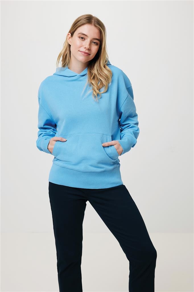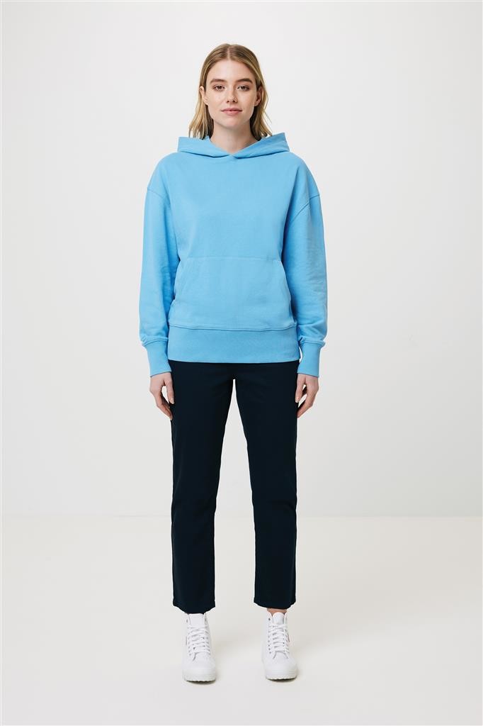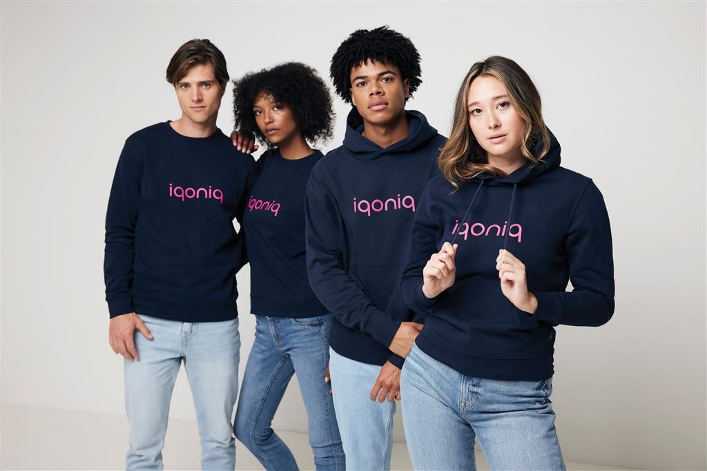 Mikina Iqoniq v uvoľnenom strihu pre maximálne pohodlie. Moderný vzhľad vďaka spadnutým ramenám a voľnejším rukávom. Dvojvrstvová tkanina, kapucňa, 2x2 rebrovanie na leme a manžetách. Príjemný mäkký česaný fleece na vnútornej strane. Drobné detaily v zodpovedajúcej farbe a malý štítok iqoniq na bočnom šve. Materiál: 100% bavlna (50% recyklovaná, 50% organická), 340 g/m2. Bez ďalších plastových prísad (ako je polyester), čo umožňuje opakovanú recykláciu na výrobu nového výrobku zo 100 % bavlny. Recyklovaný a organický obsah je zaručený vďaka použitiu špeciálnej technológie AWARE™, ktorá kombinuje schopnosť skenovania materiálu a technológiu blockchain. Každý výrobok Iqoniq má jedinečnú etiketu s QR kódom, ktorý odkazuje na príslušný digitálny pas výrobku. 2 % z výnosu z každého predaného kusu sa venujú organizácii Water.org.