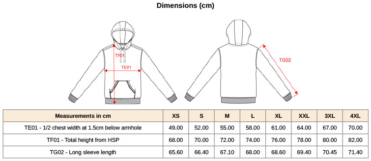 Kapucňa s podšívkou vo voštinovom vzhľade so šnúrkou tón v tóne, krčná lemovka v kontrastnej farbe, vsadené rukávy, pletené manžety na rukávoch a leme, klokanie vrecko, LSF (low shrinkage fleece) pre menšie zrážanie, 3-vrstvová kvalitná teplákovina, , prateľné na 60 °, optimálne zachovanie tvaru a odolnosť proti praniu, možno sušiť v sušičke pri nízkej teplote, nemožno chemicky čistiť.