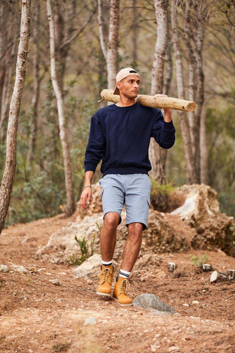 Klasický strih, okrúhly výstrih, vsadené rukávy, 1x1 rebrované manžety a lem, robustná a odolná zmesová tkanina, vo vnútri česaná, štítok TearAway, prateľné na 40 °, možno sušiť v sušičke pri nízkej teplote.