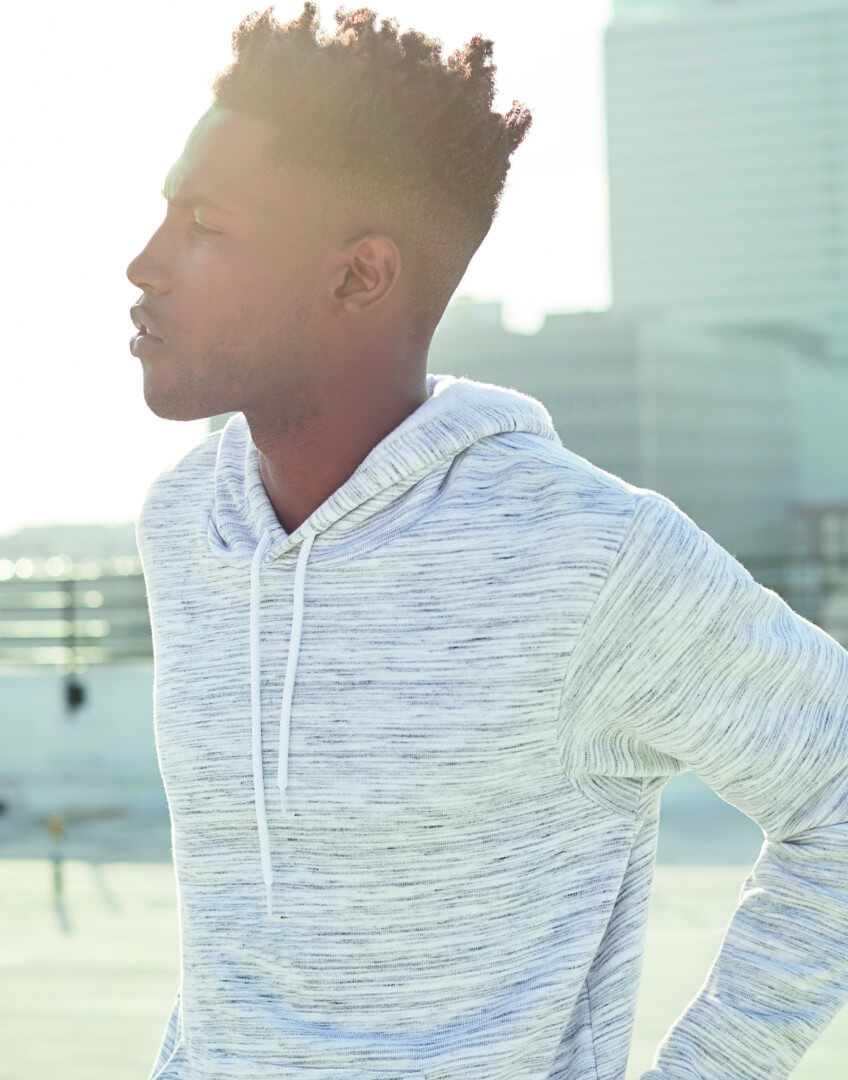 ·220 g/m2 ·60% česaná prstencová bavlna, 40% polyester fleece ·farby Digital: 100% polyester ·farby Marble fleece: 85% česaná prstencová bavlna, 15% polyester ·kapucňa s bielou šnúrkou ·klokanie vrecko ·rebrované rukávy a spodný lem ·priliehavý strih