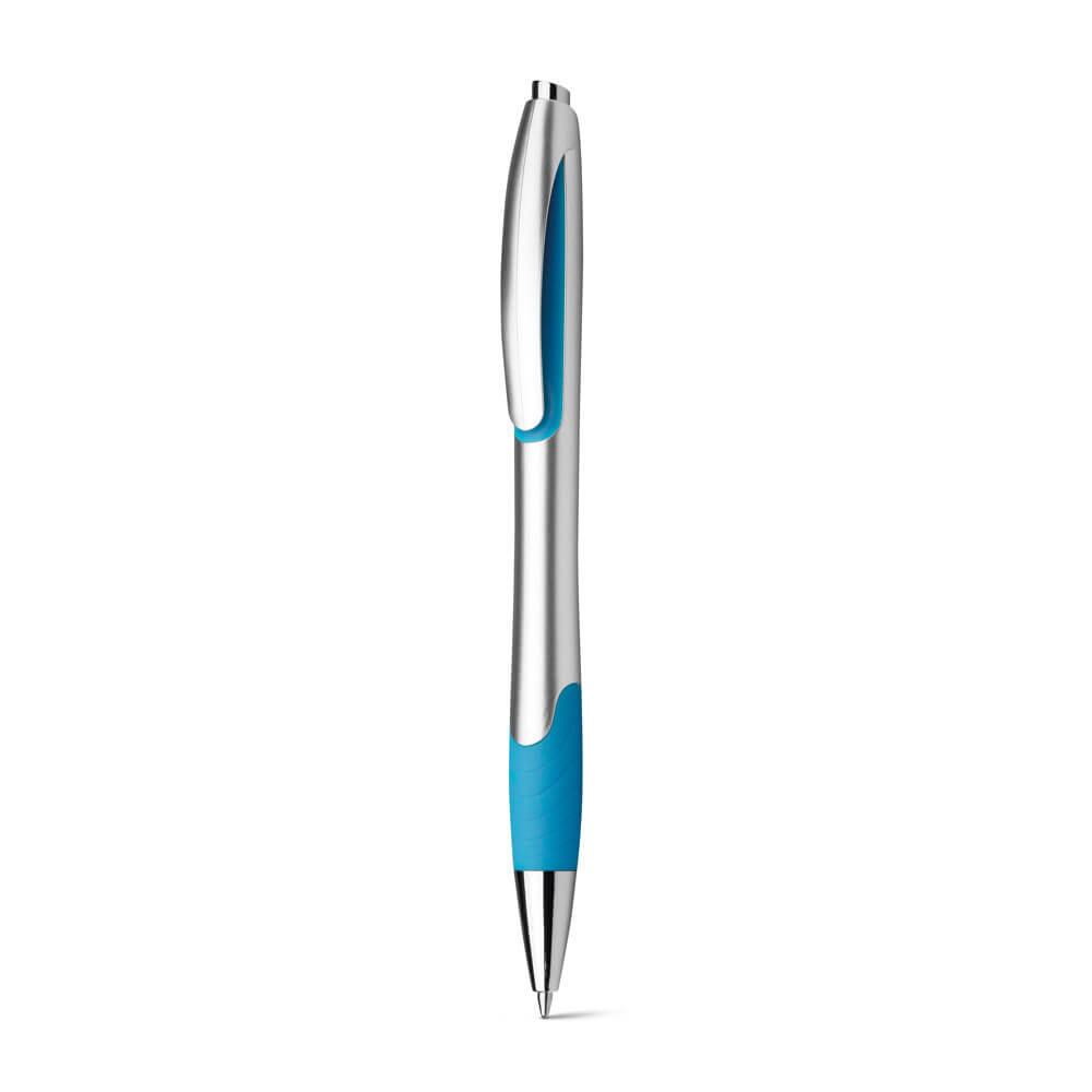 Guľôčkové pero s gumovým gripom. ø11 x 140 mm. Modrá náplň.Potlač: Guličkové pero - Spodná časť (Digitálna UV tlač - 55 x 5)