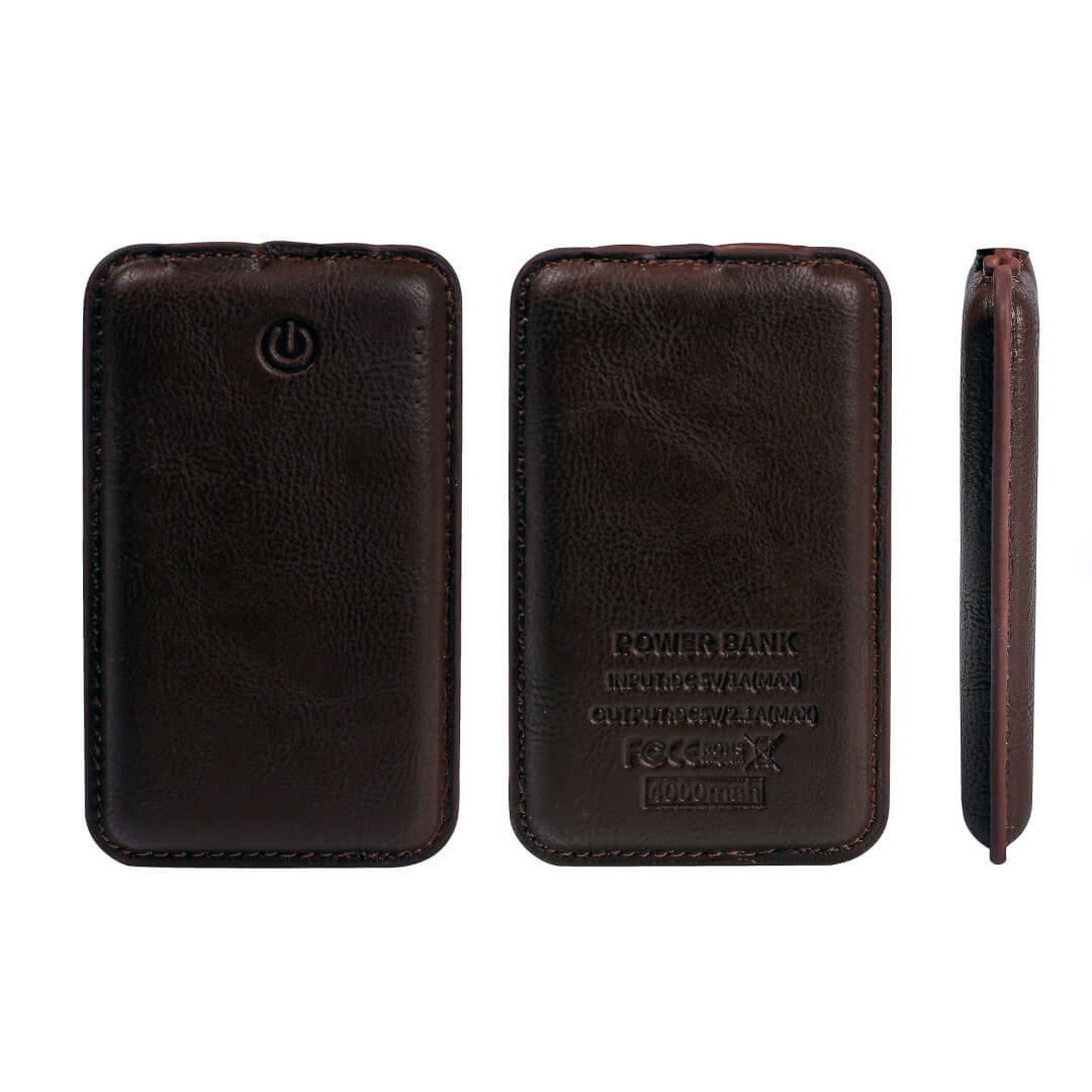 Čo sa ukrýva v elegantnom koženom puzdre? Predsa praktická power banka pripravená kedykoľvek nabiť vaše mobilné zariadenie. Majte po ruke dostatok energie kedykoľvek budete potrebovať. Kapacita mini power banky je 4000 alebo 5000 mAh. O nabíjanie mobilného zariadenia sa postará USB výstup 5V/2,1A. Externá nabíjačka má malé rozmery, takže sa pohodlne zmestí kamkoľvek. Povrch predstavuje imitáciu kože, čo dodáva power banke exkluzívny vzhľad. Na vytvorenie vlastného dizajnu môžete využiť možnosť potlače alebo štýlovo vyzerajúcej razby do syntetickej kože.
