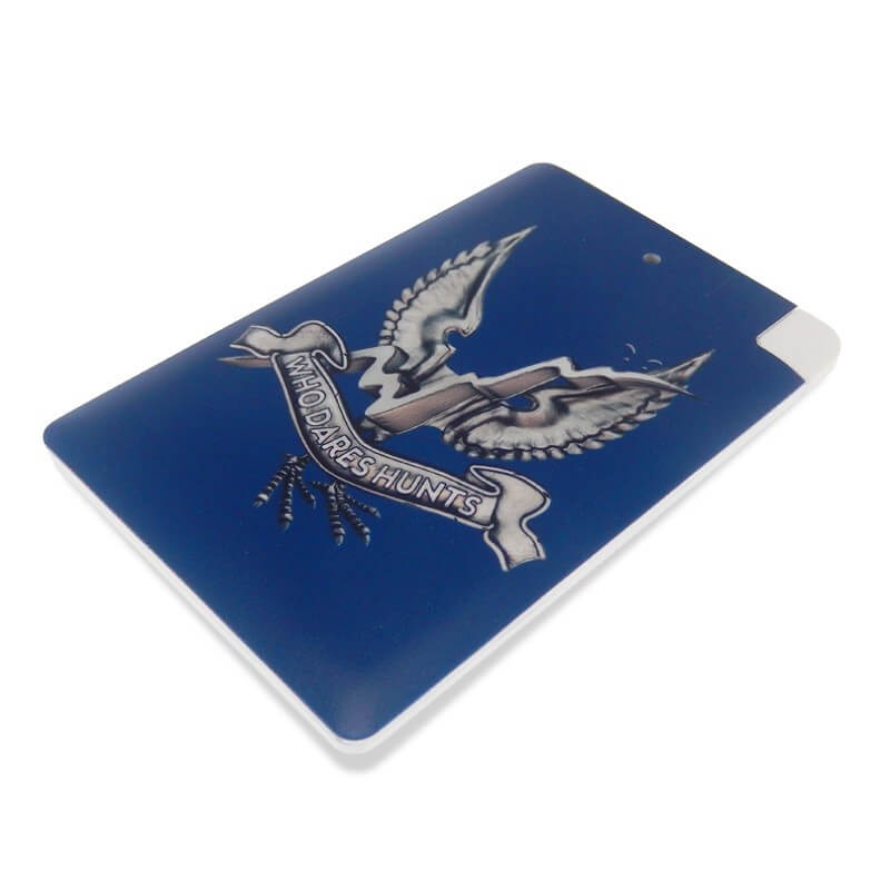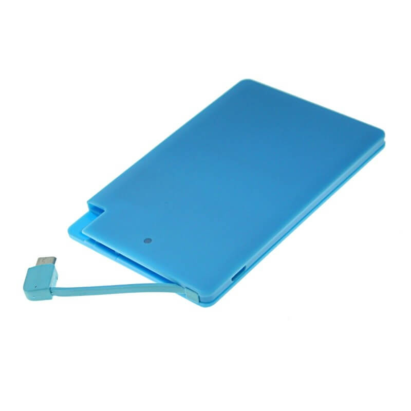 MINI POWER BANK KARTA (EXTERNÁ NABÍJAČKA) 4000 mAh. Malé rozmery a plastové telo so zabudovaným USB micro káblom. Možnosť celoplošnej CMYK potlače! Nabitie Power Bank zaistíte cez USB konektor počítača (prípadne sieťový adaptér), a cez micro USB, popr. iný konektor následne nabijete Váš mobilný telefón alebo iné zariadenie. Plne nabitá Power Bank zaistí 1-3 nabitie mobilného telefónu, podľa kapacity jeho batérie. Nabíja iPhone, mobily, MP3, kamery a pod.
