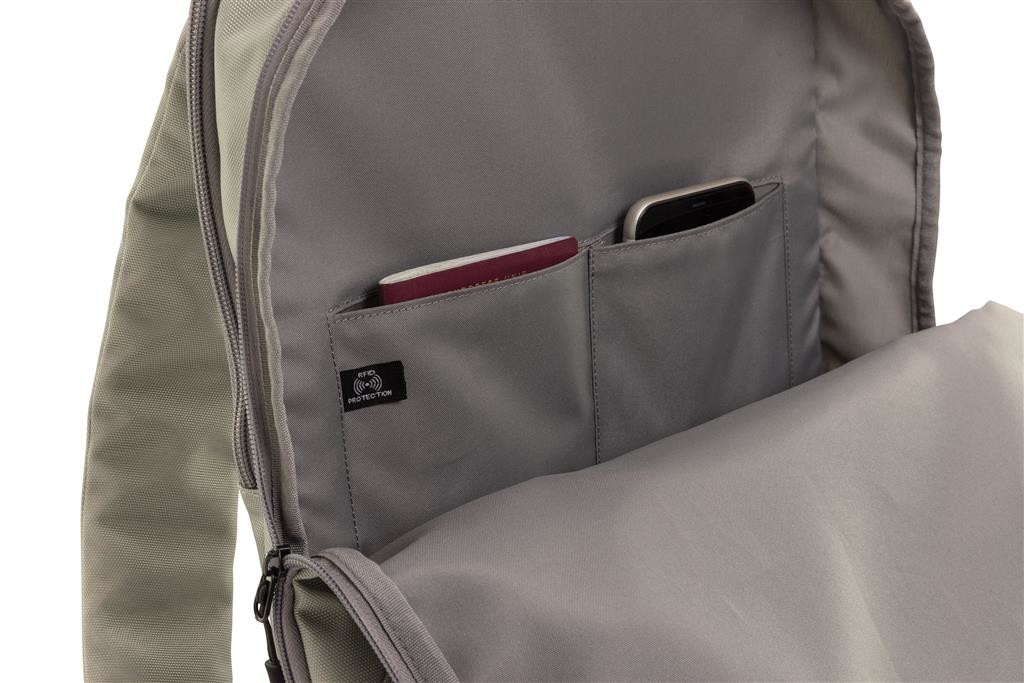 Moderný batoh na 15.6" notebook z 1200D polyesteru. Priestranný hlavný oddiel, oddiel na notebook, predné vrecko na zips. Vyrobené z recyklovaného polyesteru vrátane skenovateľnej zložky AWARE ™ garantujúci obsah recyklátu. Na výrobu bolo využité 32,7 500ml PET fliaš a bolo uspo 9 ,5 litrov vody Z výťažku každého predaného produktu z kolekcie Impact je navyše prispených 2 % na podporu iniciatívy Water.org bez PVC.