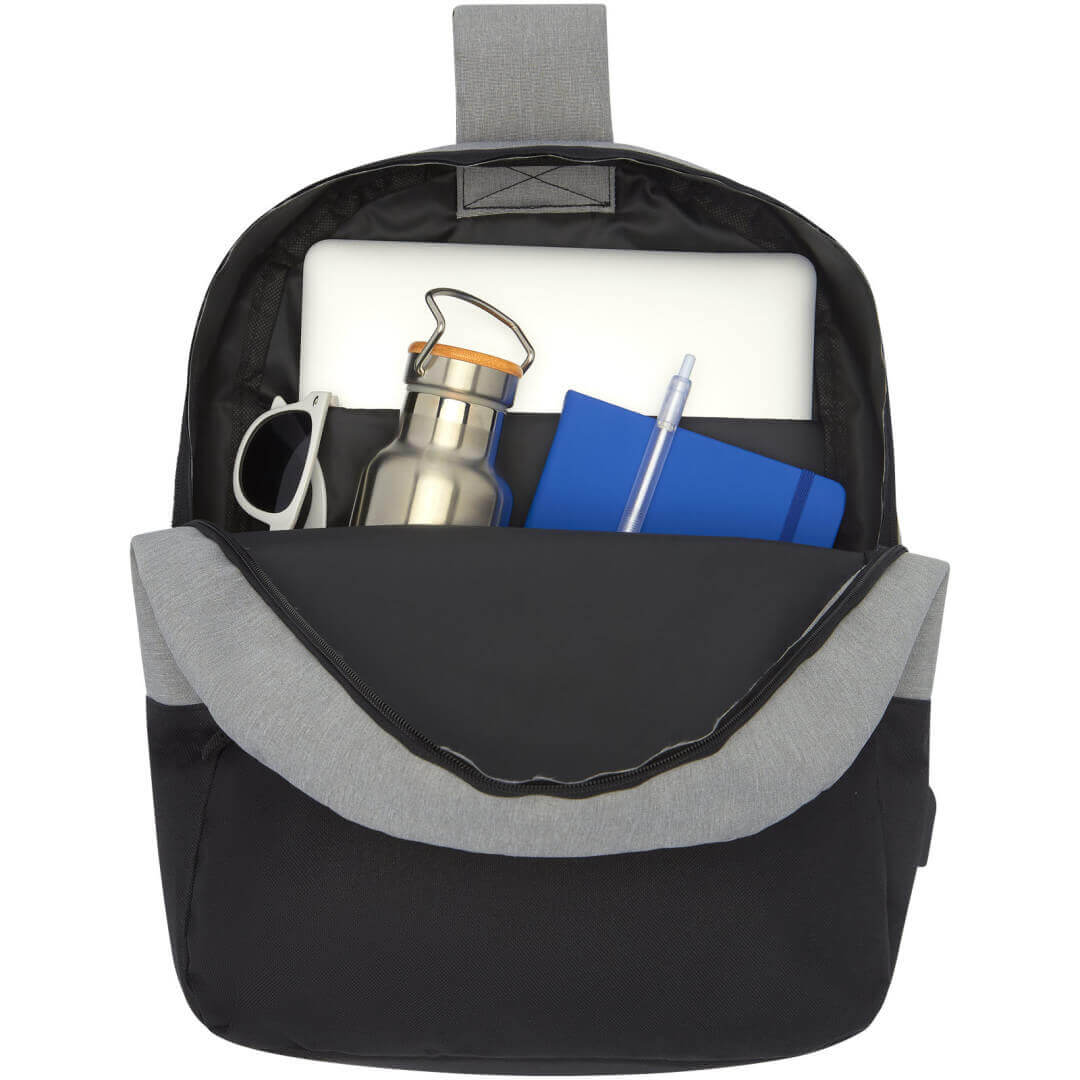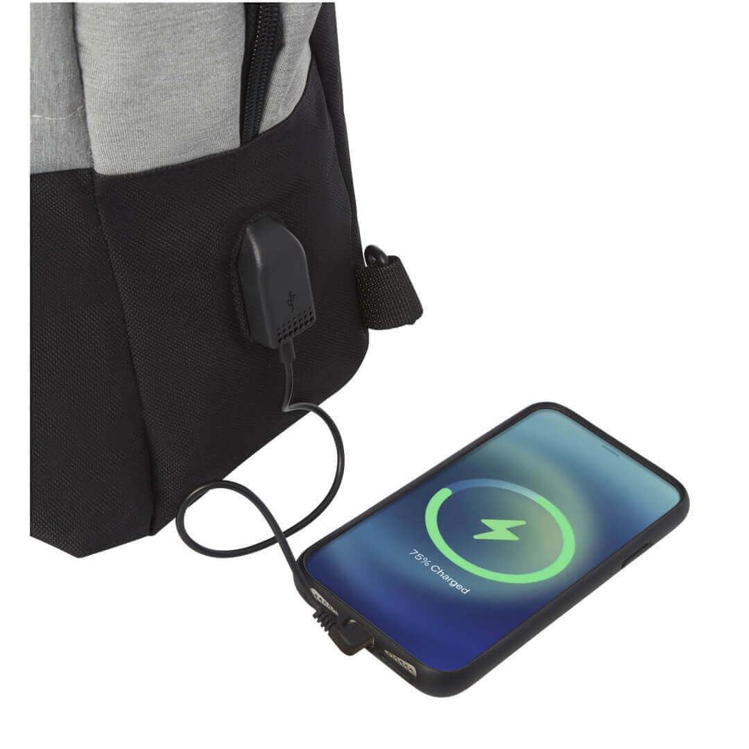 Batoh s popruhom na notebook Mono s melírovaným predným panelom a čiernym zadným panelom. Disponuje veľkou hlavnou priehradkou na zips s polstrovaným obalom na notebook 15,6". Dodáva sa s USB portom vrátane USB-A kábla s 1 samčím a 1 samičím konektorom. Ramenný popruh je možné pripevniť k ľavému alebo pravému dolnému rohu tašky. Farby tašky sa môžu mierne líšiť z dôvodu použitia prírodných farbív látok, vzorov a tlače.