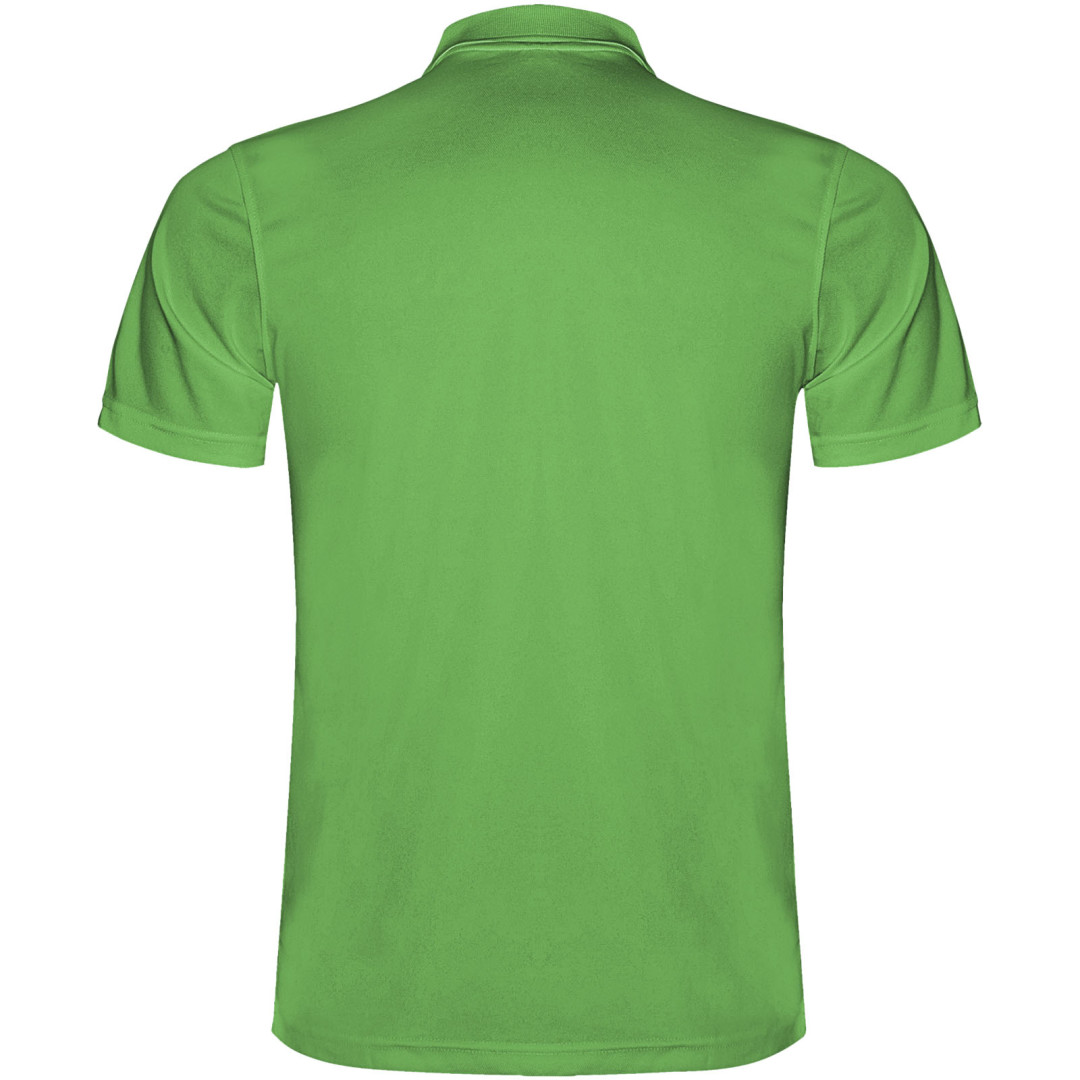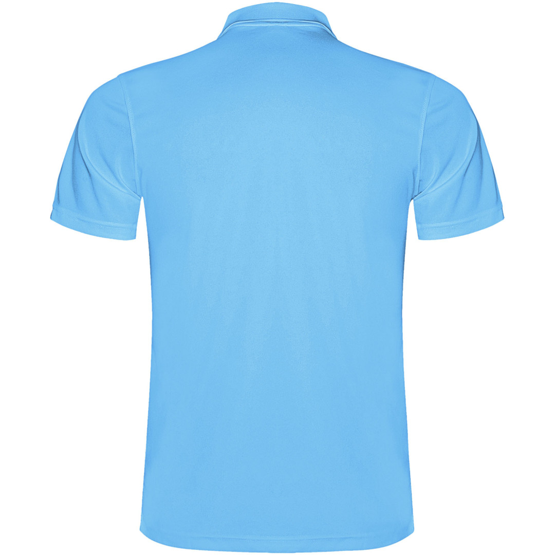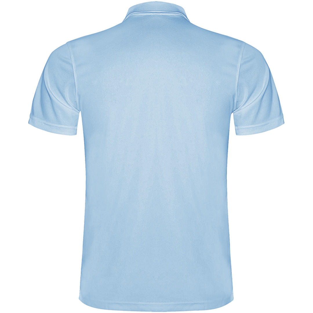 Technické polo tričko s krátkym rukávom. Úpletový golier s légou na 3 gombíky. Priedušná, ľahko umývateľná a suchá tkanina. Odnímateľná etiketa. Technická tkanina. Priedušná tkanina. Model meria 184 cm a má na sebe veľkosť L.