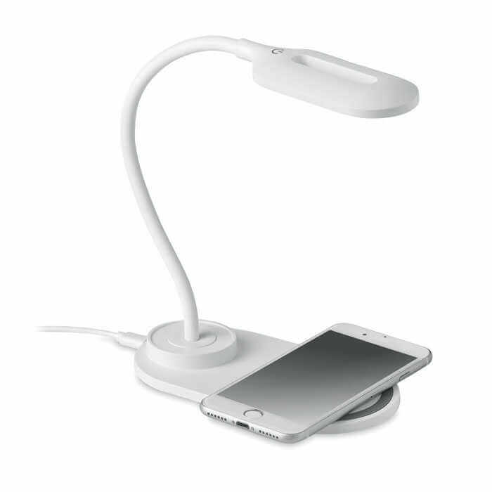 Stolná lampa s moderným vzhľadom z ABS materiálu s 10 LED svetlami a 10W bezdrôtovou nabíjačkou. Dotykové tlačidlá pre zapnutie svetla sú integrované vo vnútri stojana, takže ich je možné ovládať podobne ako dotykový displej. Na nabíjanie batérie mobilného zariadenia ho jednoducho umiestnite na stojan lampy. Výstupný signál: Svietidlo je vybavené vstavanou batériou, ktorá je určená na napájanie: DC 9V/1,1A (10W) pre rýchle nabíjanie. Kompatibilný s najnovšími zariadeniami Android, iPhone® 8 a novšími. Rozmery 16x8,4x24,5 cm.