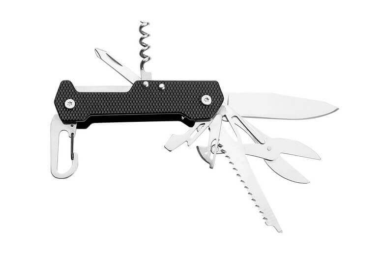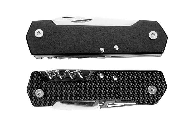 Multifunkčný vreckový nôž značky Schwarzwolf. Obsahuje 9 nástrojov - nôž, nožnice, pílku, vývrtku, otvárač fliaš, otvárač na konzervy, plochý skrutkovač, krížový skrutkovač a karabínku. Rukoväť je z jednej strany v modernom vrúbkovanom dizajne, z druhej strany hladká na umiestnenie Vášho loga. Balené v darčekovej krabičke. Materiál: náradie - nerezová oceľ 2Cr13, rukoväť - anodizovaný hliník. Odporúčaná technológia tlače: laser L1. Maximálna veľkosť tlače: 40 × 10 mm. Rozmery: v zatvorenom stave 9,7 × 2,7 × 1,9 cm. Uhlíková stopa: gCO2 e1727.