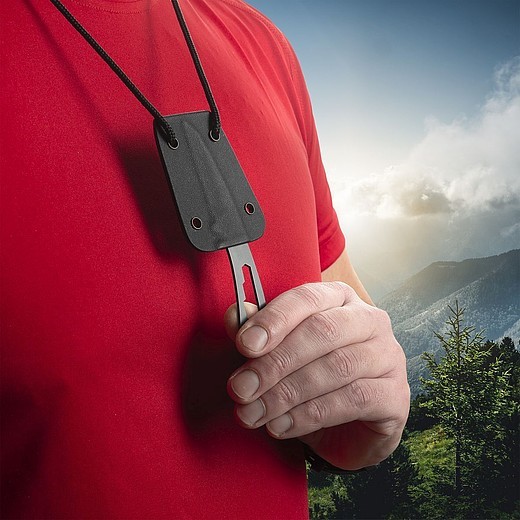 Multifunkčný nôž značky Schwarzwolf v puzdre so šnúrkou na krk. Rukoväť noža je možné použiť ako kľúč na uťahovanie matíc a na konci noža je umiestnený otvárač fliaš. Šnúrka obsahuje oranžovú píšťalku. Puzdro je vyrobené zo špeciálnej zliatiny plastov Kydex. Balené v darčekovej krabičke. Materiál: nerezová oceľ, zliatina plastov Kydex Odporúčaná technológia tlače: laser L1 Maximálna veľkosť tlače: 30 × 7 mm Rozmery: nôž 13 × 2 cm, puzdro 7,5 × 5,5 cm, dĺžka šnúrky 45 cm Uhlíková stopa: gCO2e 369