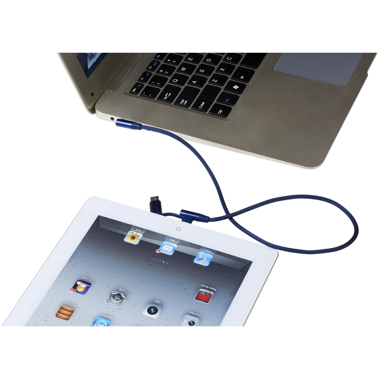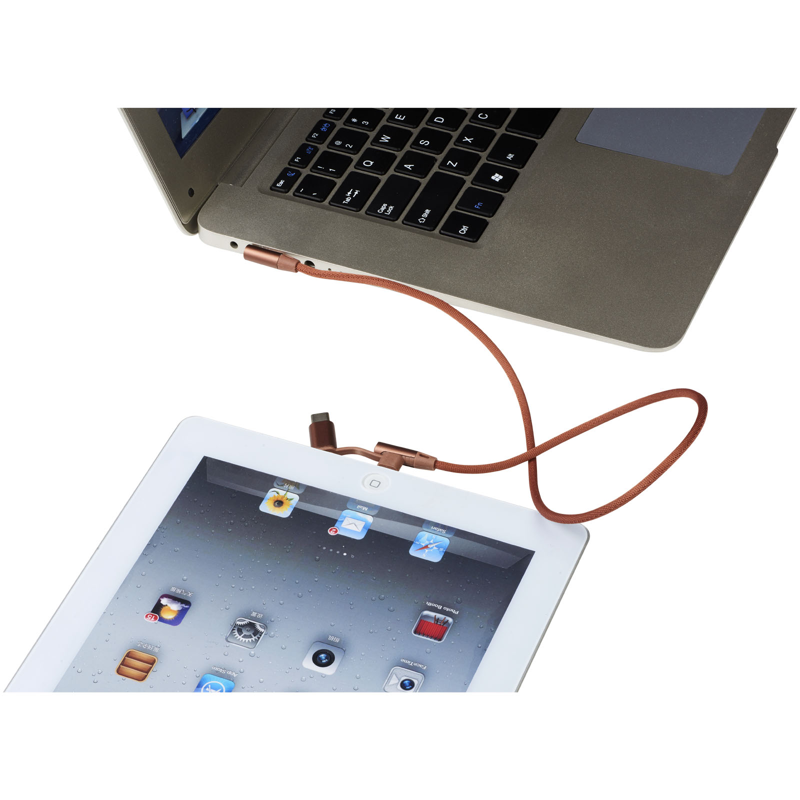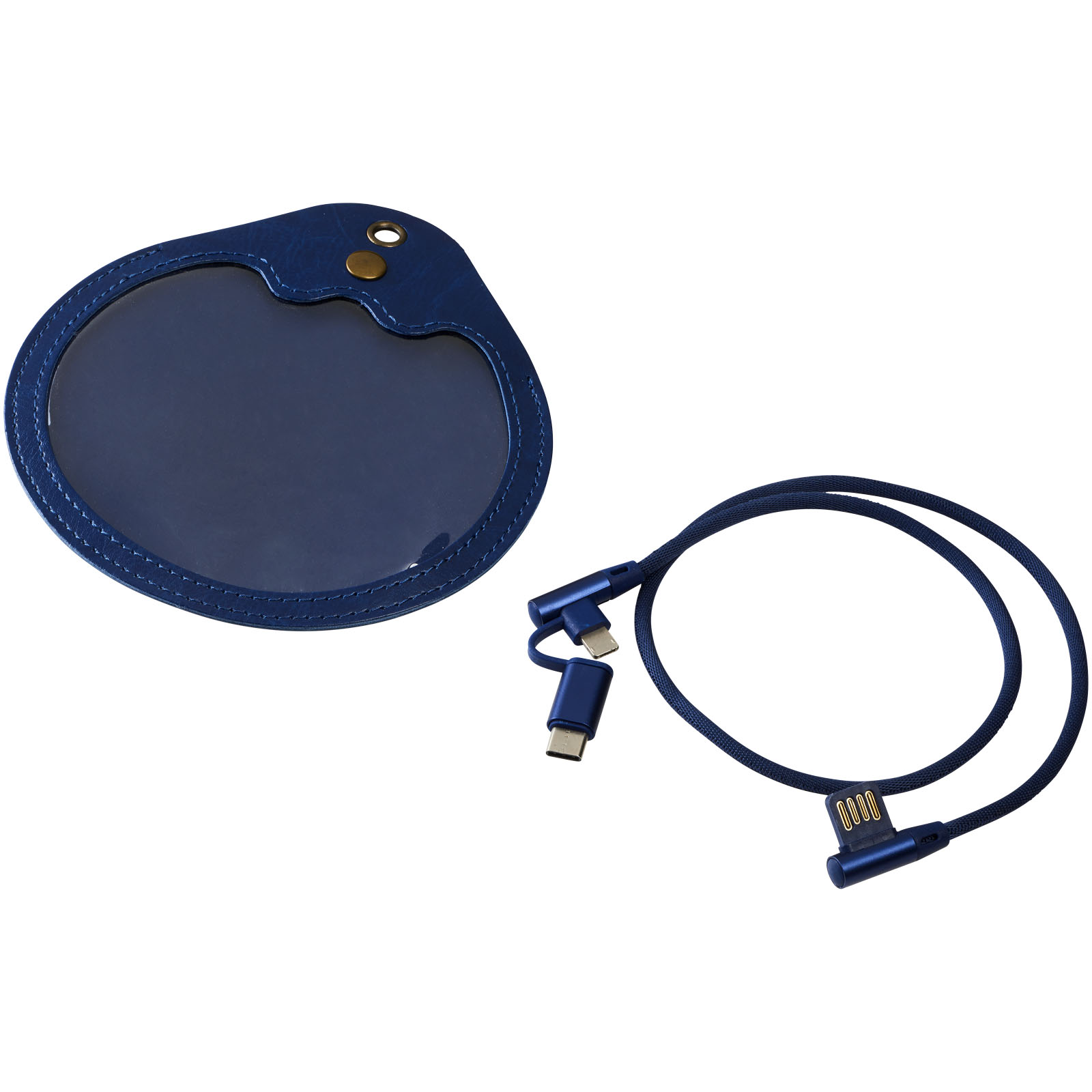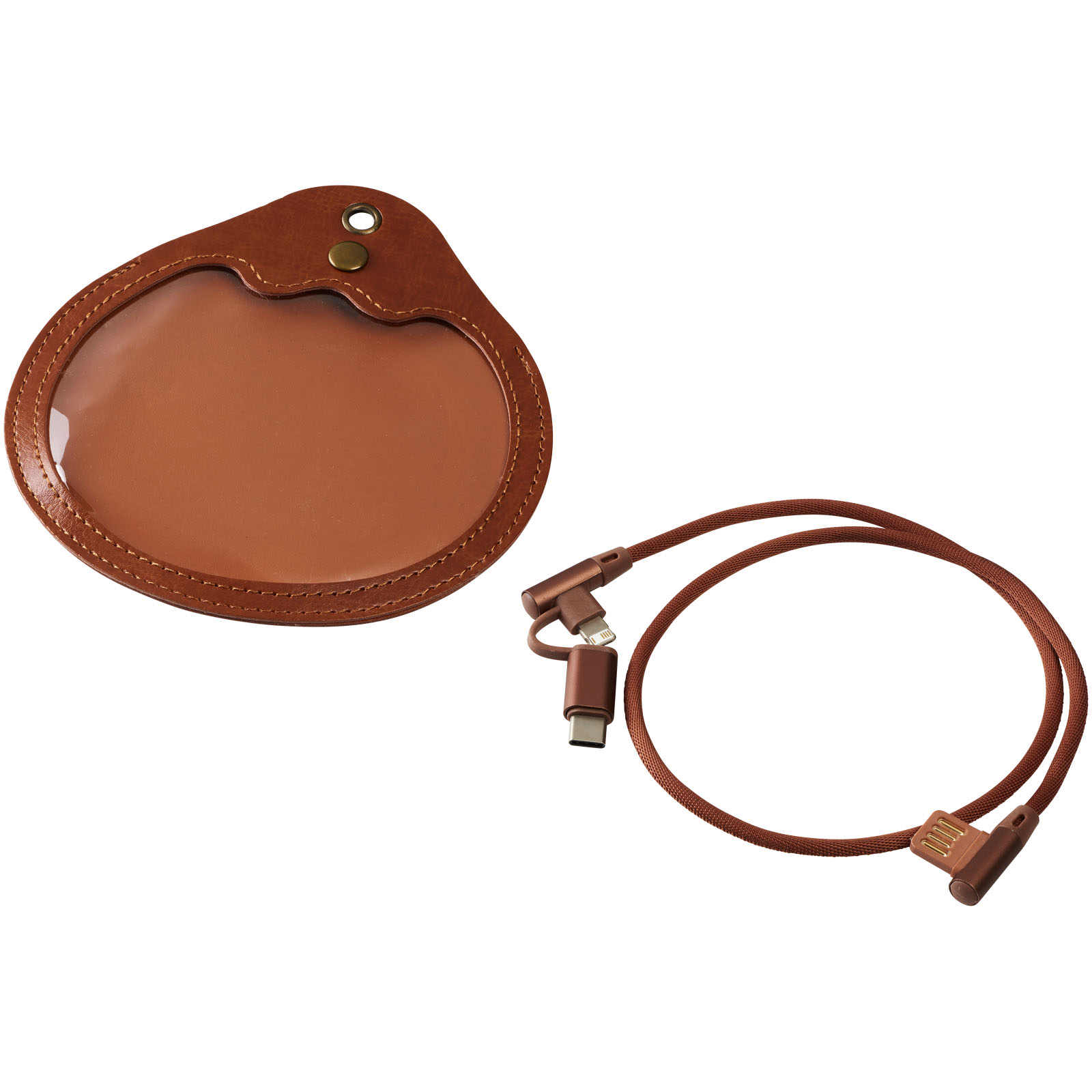 Nabíjací kábel Ecliptica 3 v 1. Kábel Ecliptica 3 v 1 je uložený v mäkkom ochrannom puzdre. Jedná sa o dvojitý splietaný kábel z nylonu s 90stupňovým rozhraním koncovky USB typu C a duálna kompatibilná koncovkua2 v 1 pre zariadenia Apple iOS a Android. Podporuje nabíjanie a dátový prenos. Dĺžka kábla: 50 cm. Plast ABS, PU.
