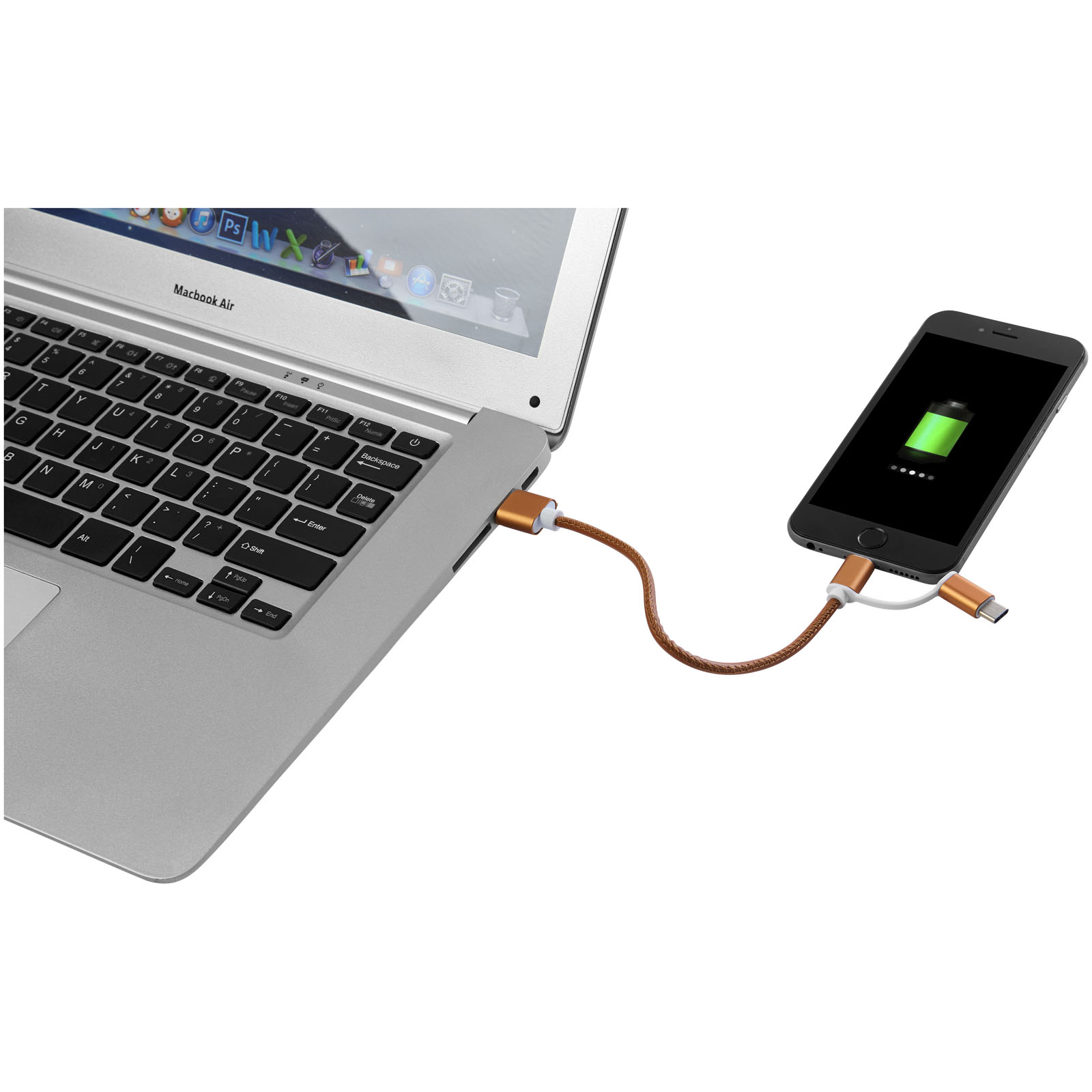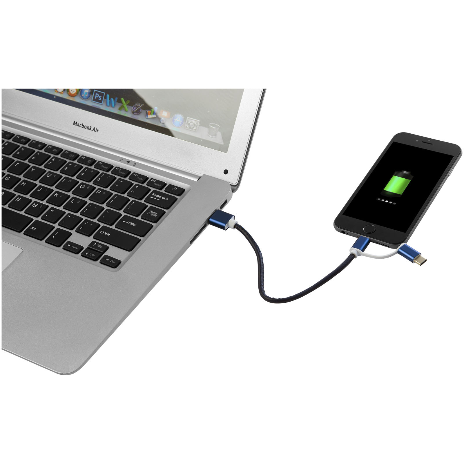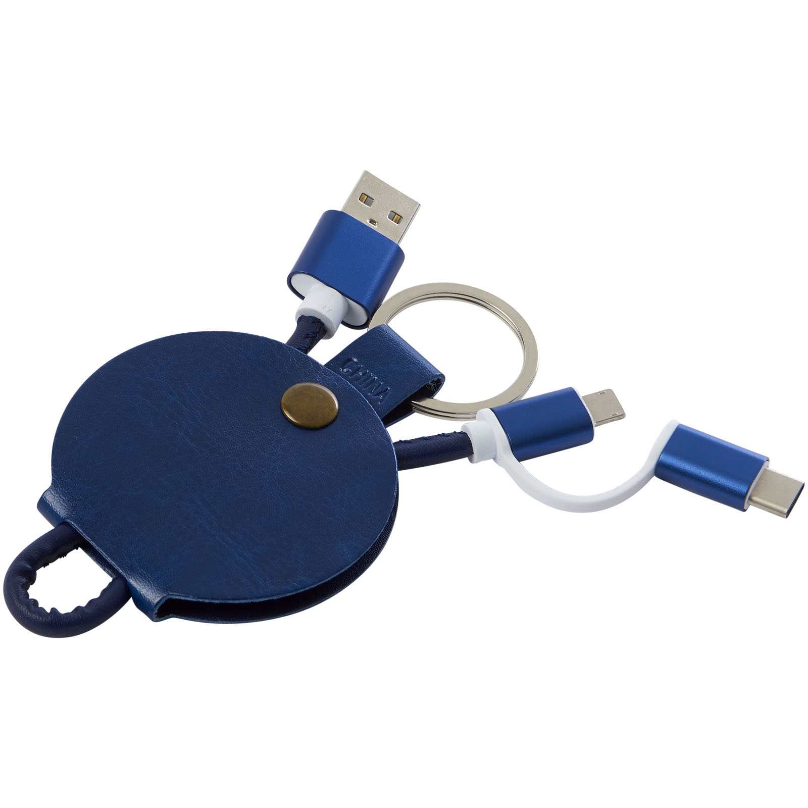 Kábel Gist 3 v 1 je uložený v mäkkom ochrannom kryte, ktorý zahŕňa koncovku USB typu C a duálny kompatibilný koncovku 2 v 1 pre zariadenia Apple iOS a Android. Krúžok pripája nabíjacia sadu ku kľúčom alebo taške. Dĺžka kábla: 20 cm. PU.