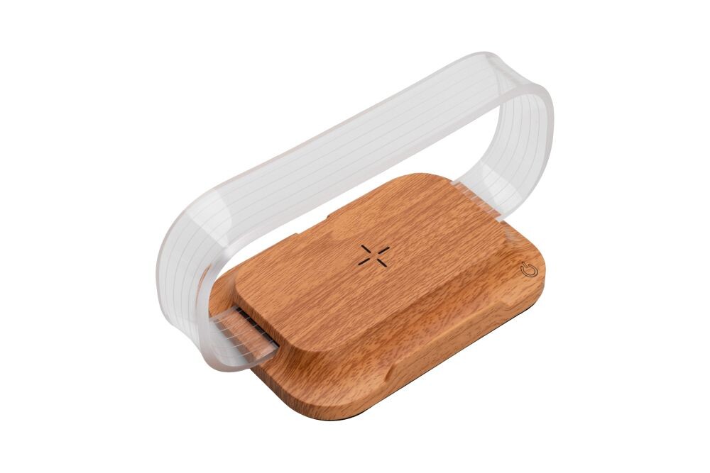 Elegantný stojan na telefón s funkciou 15W bezdrôtového nabíjania. Stojan je vyrobený v imitácii dreva, čo mu dodáva luxusný vzhľad. Obsahuje plastový rámček s 3 odtieňmi svetla. Vstup USB Typ-C 9V2A. Balené v luxusnej krabičke Pierre Cardin a dodávané s certifikátom pravosti. Rozmery: stojan 15,4 × 7,1 × 7,1 cm; balenie 15 × 7,7 × 8 cm.