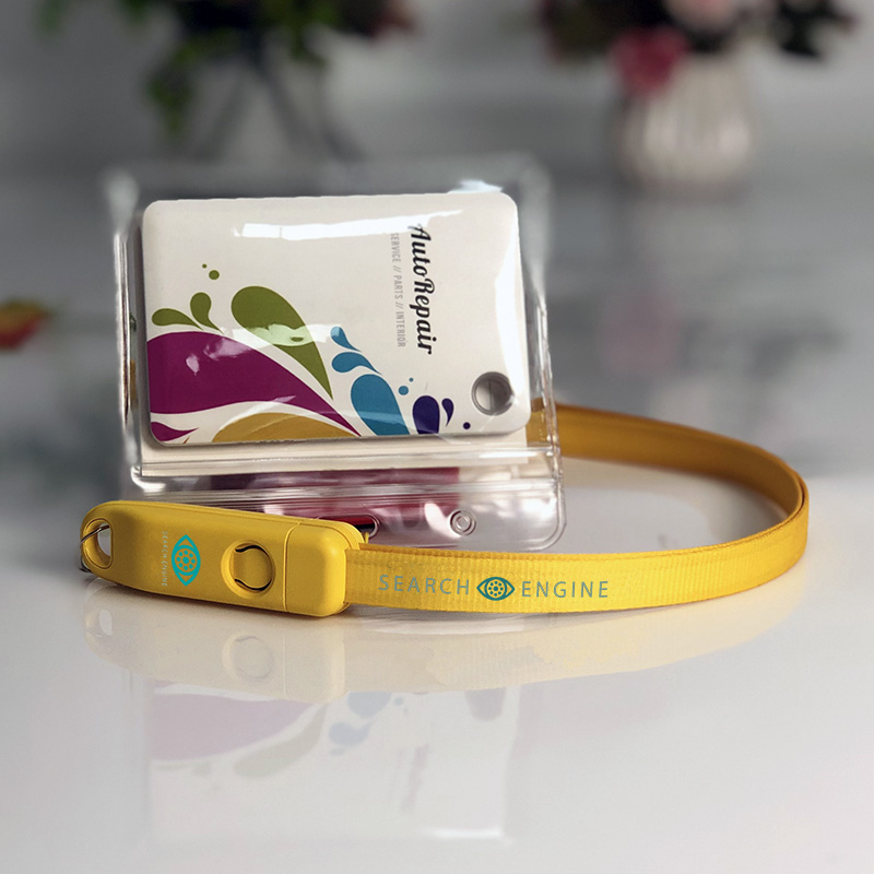 Napájací kábel 3 v 1 uložený v šnúrke. Po odstránení šnúrky z krytu nájdete na jednej strane konektor USB a na druhej strane konektor micro USB, Lightning alebo USB typu C. Jedinečnosť nabíjaciemu káblu dodáva možnosť vlastnej farby Pantone, ako aj veľká plocha na potlač nielen na šnúrke, ale aj na plastovom kryte. Šnúrku možno použiť na zavesenie telefónu alebo menovky. Verzia vo farbe Pantone je k dispozícii od 100 kusov.