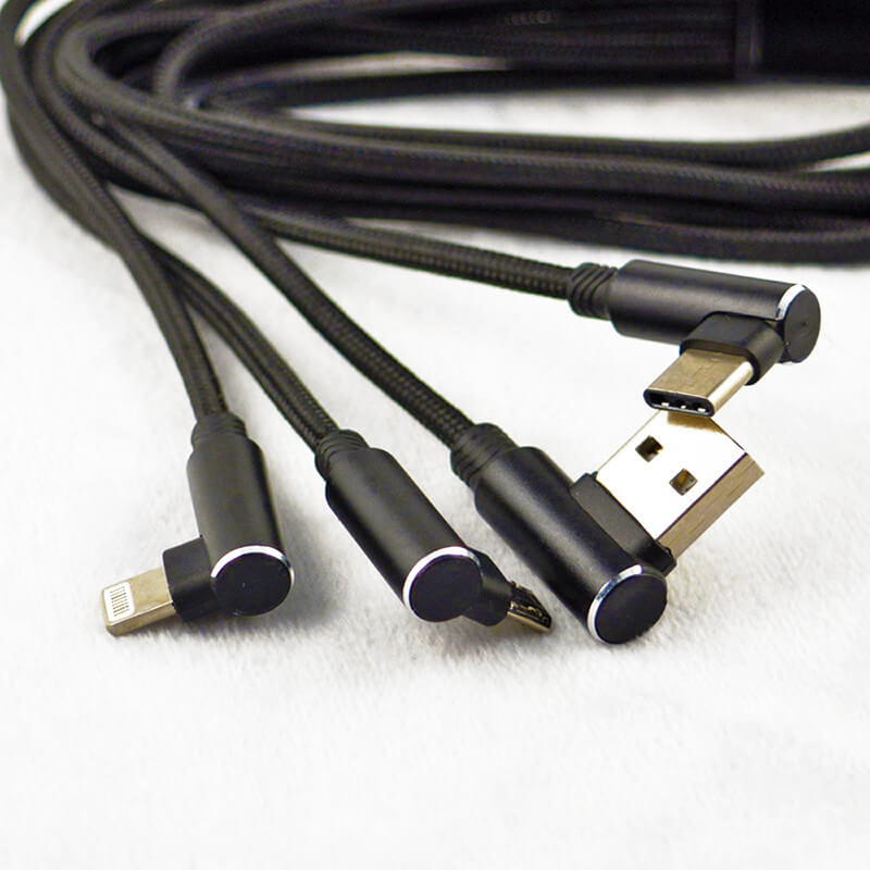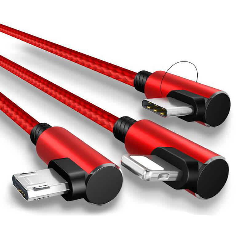 Nedostatok miesta na stole a stále nemôžete nájsť kábel so správnym konektorom? Napájací kábel 3v1 s „L“ konektormi rieši presne tieto prípady. Univerzálny napájací USB kábel je na konci rozdelený na tri časti, kde každá má svoj vlastný konektor (Type-C, Lightning a USB micro). Vďaka zakončeniu kábla do tvaru L ho pohodlne využijete aj pri nabíjaní viacerých zariadení a bude lepšie držať na svojom mieste. Takto tvarované konektory sú menej náchylné na poškodenie ako seba samých, tak konektorov napájaného zariadenia. Plošky na kábli je možné opatriť ľubovoľnou potlačou alebo laserom.