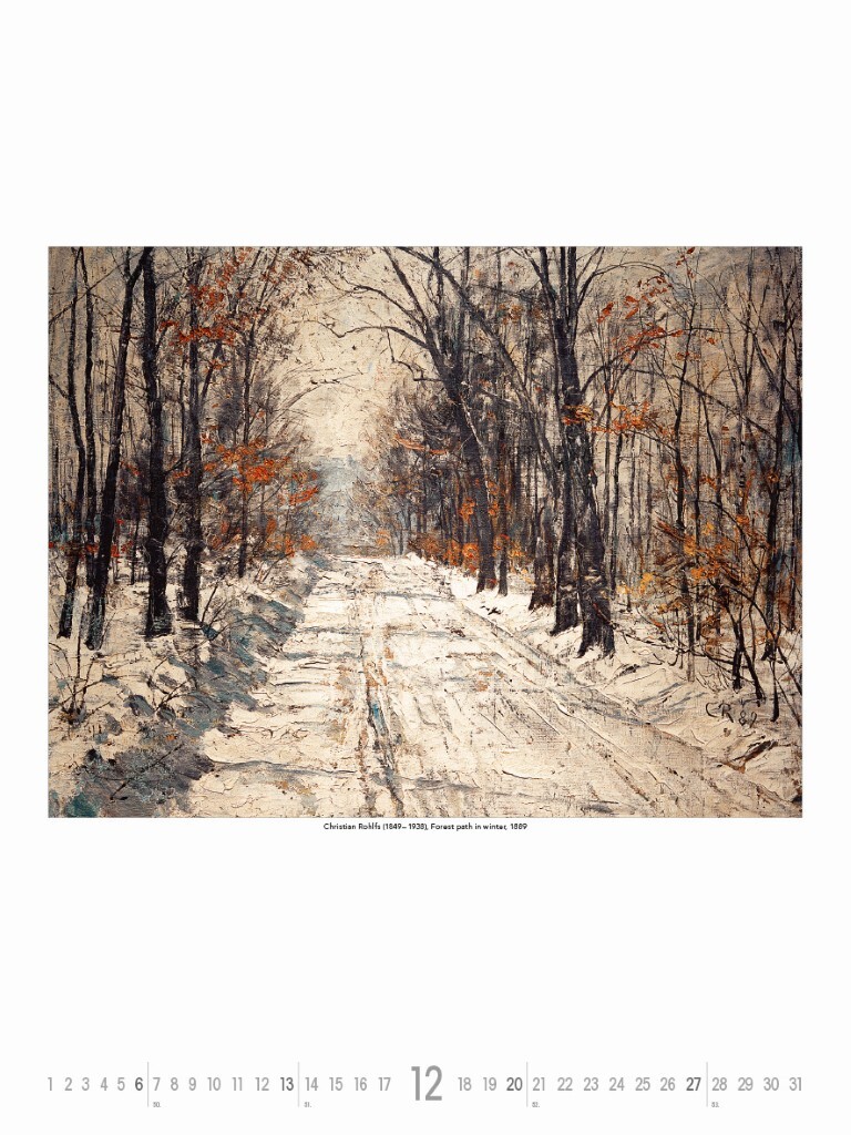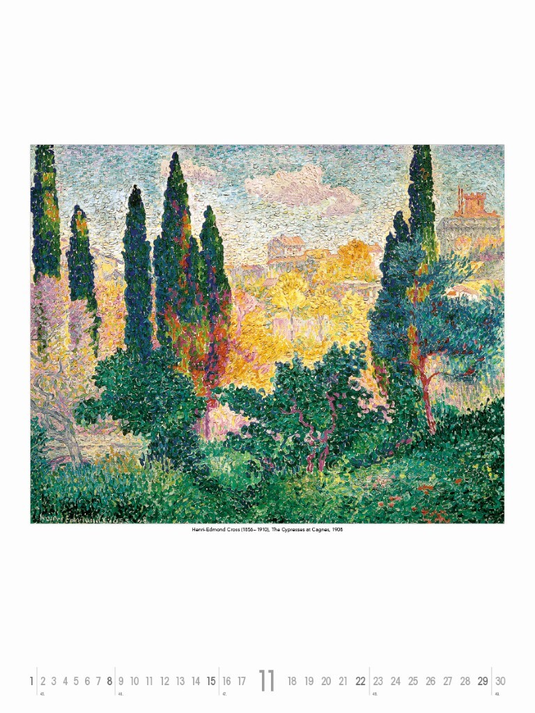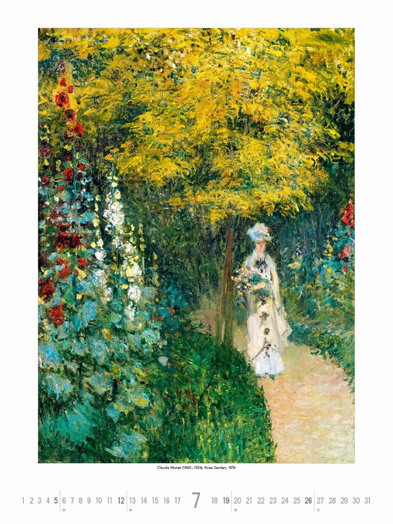 Vydajte sa na cestu časom a prírodou s týmto elegantným nástenným kalendárom, ktorý zachytáva krásu záhrad očami najväčších impresionistov. Každý mesiac predstavuje majstrovské dielo od autorov ako Claude Monet, Pierre-Auguste Renoir či Camille Pissarro – plné svetla, farieb a poetickej atmosféry. Ideálny darček pre milovníkov umenia a prírody.