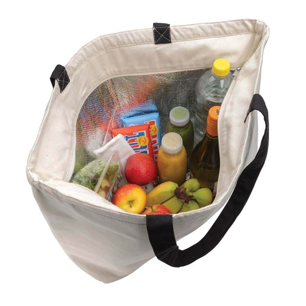 Veľká chladiaca taška na uchovanie obľúbených nápojov alebo jedla. Ponúka priestor pre až 24 plechoviek alebo 6 fliaš vína. Recyklované plátno zostáva v pôvodnej farbe, pri výrobe tak nie sú používané chemikálie a dodatočné farbivá alebo bielidlá. Vrátane skenovateľnej zložky AWARE™ garantujúcej obsah recyklátu. V porovnaní s konvenčným plátnom bolo výrobou každého kusu usporených 2 393 litrov vody, pri prírodnom farebnom variante až 2 732 litrov (absencia farbenia pôvodného materiálu určeného na recykláciu). Z výťažku každého predaného produktu z kolekcie Impact sa navyše prispieva 2 % na podporu iniciatívy Water.org. Zloženie materiálu: 70% recyklovaná bavlna, 30% recyklovaný polyester.