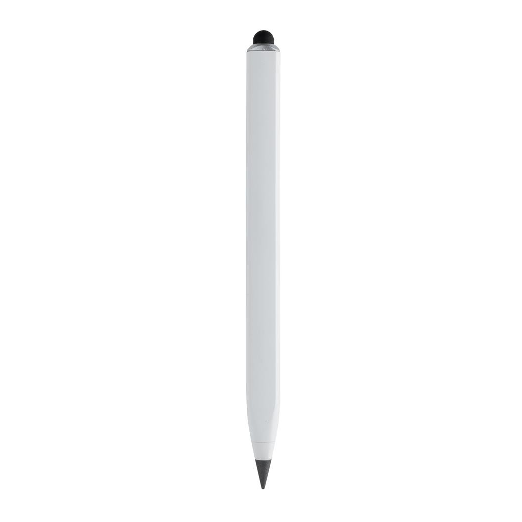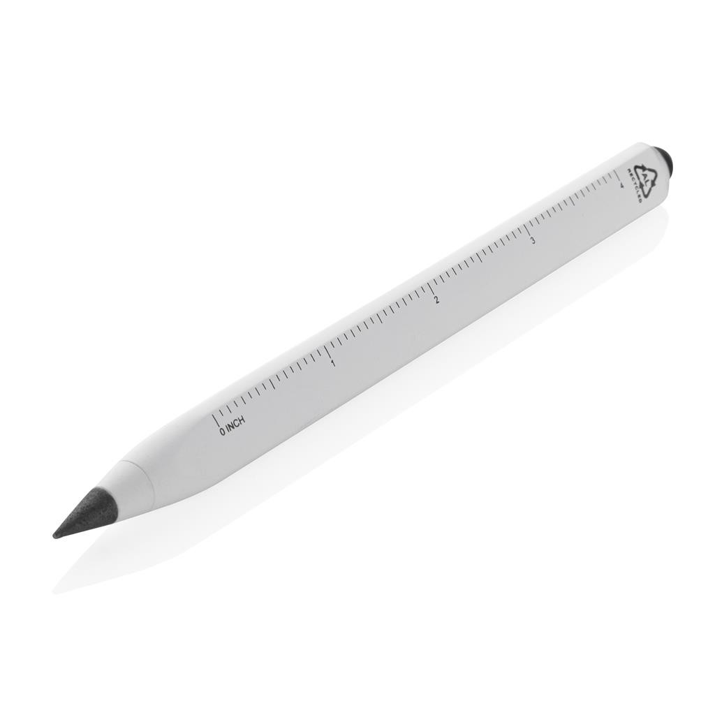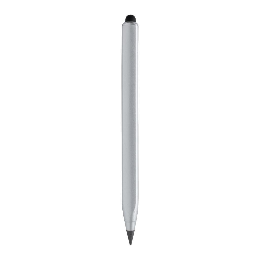 Unikátna ceruzka, ktorá plnohodnotne nahradí vaše tradičné drevené ceruzky, ktoré majú písaciu dĺžku iba okolo 200m. Vďaka využitiu grafitovej špičky je písanie identické ako klasickou ceruzkou, avšak dĺžka písania je predĺžená až na 20 000m. Funguje teda ako klasická ceruzka, dá sa gumovať, jej výdrž je však mnohonásobne vyššia, že dokáže nahradiť až 100 bežných ceruziek. Vyrobená z RCS recyklovaného hliníka. RCS (Recycled Claim Standard) je globálny štandard, ktorý umožňuje overiť použitie recyklovaného materiálu v produkte naprieč celým dodávateľským reťazcom. Celkový podiel recyklátu podľa váhy produktu: 40 %. Trojuholníkový tvar s pravítkom v cm na jednej strane av palcoch na druhej strane. Vrátane stylusu na ovládanie dotykových obrazoviek. Balené v FSC® darčekovom balení.