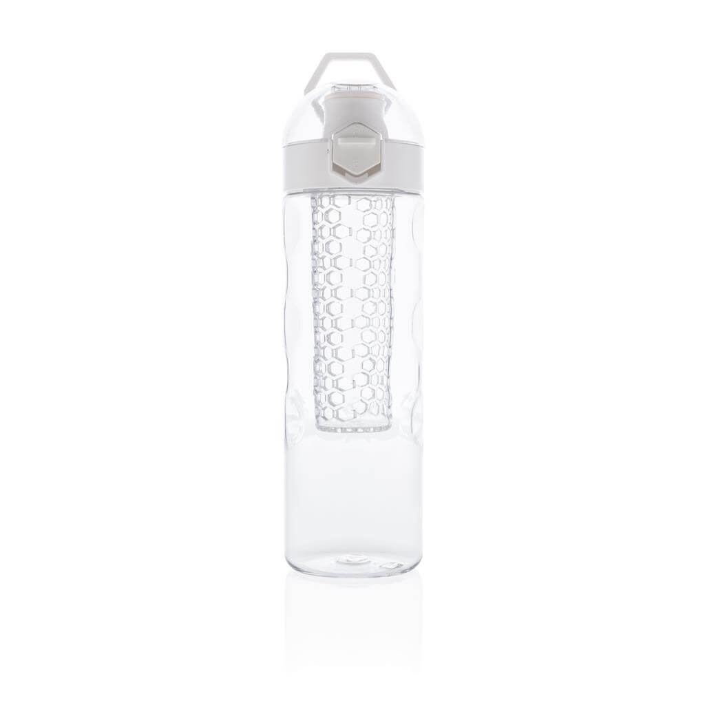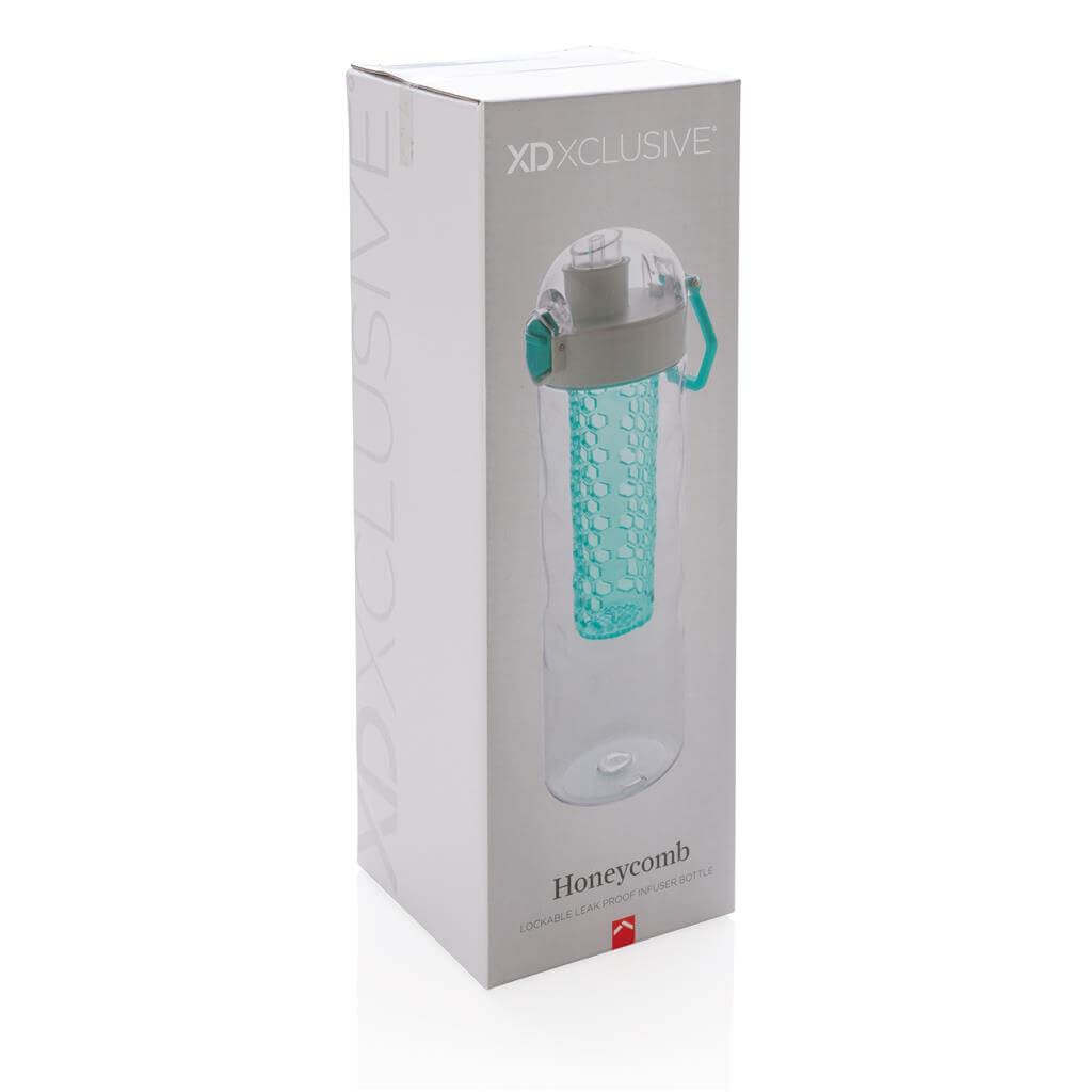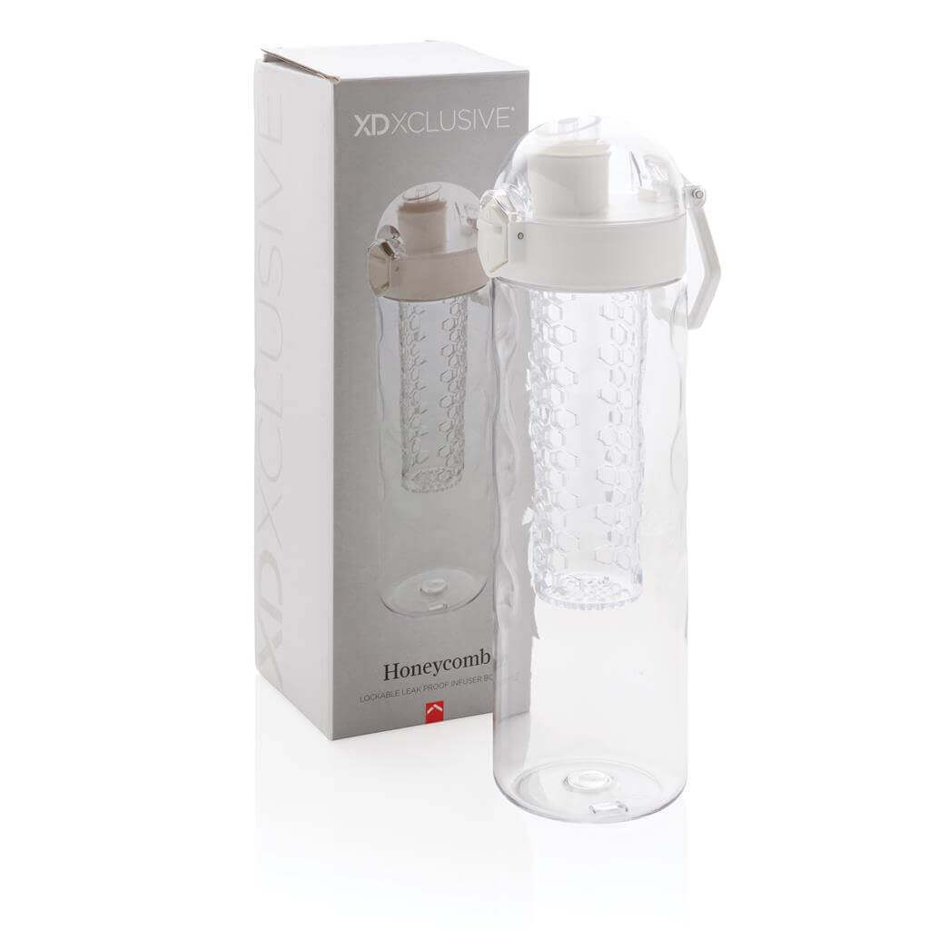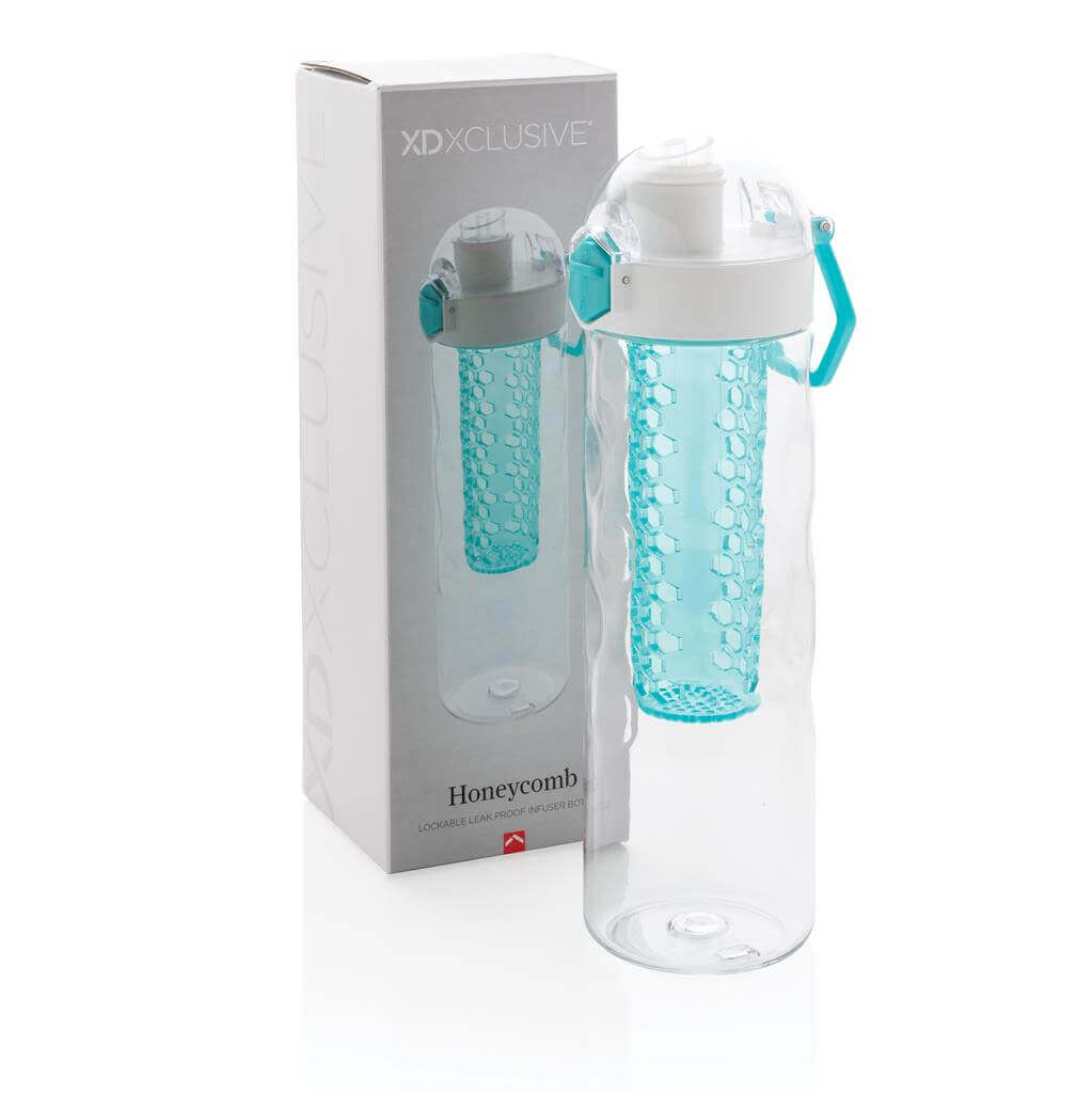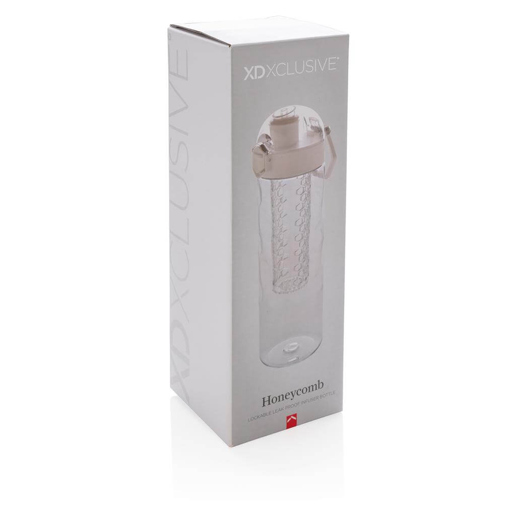 Praktická fľaša z odolného moderného Tritan s dizajnovými prvkami medových plástov pre pohodlné pitie jednou rukou. Otváranie viečka pomocou uzamykateľného mechanizmu na stlačenie, ktoré chránia proti náhodnému vyliatiu. Vrátane infuseru pre zdravé osvieženie nápojov ovocím a plastového pútka pre nosenie. BPA free, neabsorbuje pachy. Objem: 700ml. ochranný vzor®