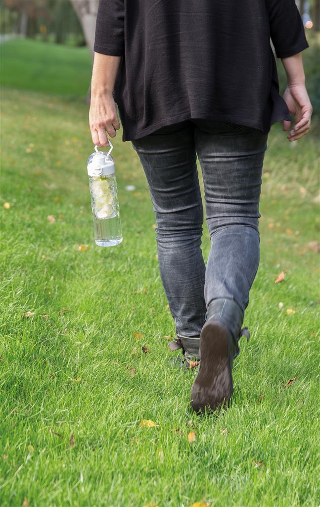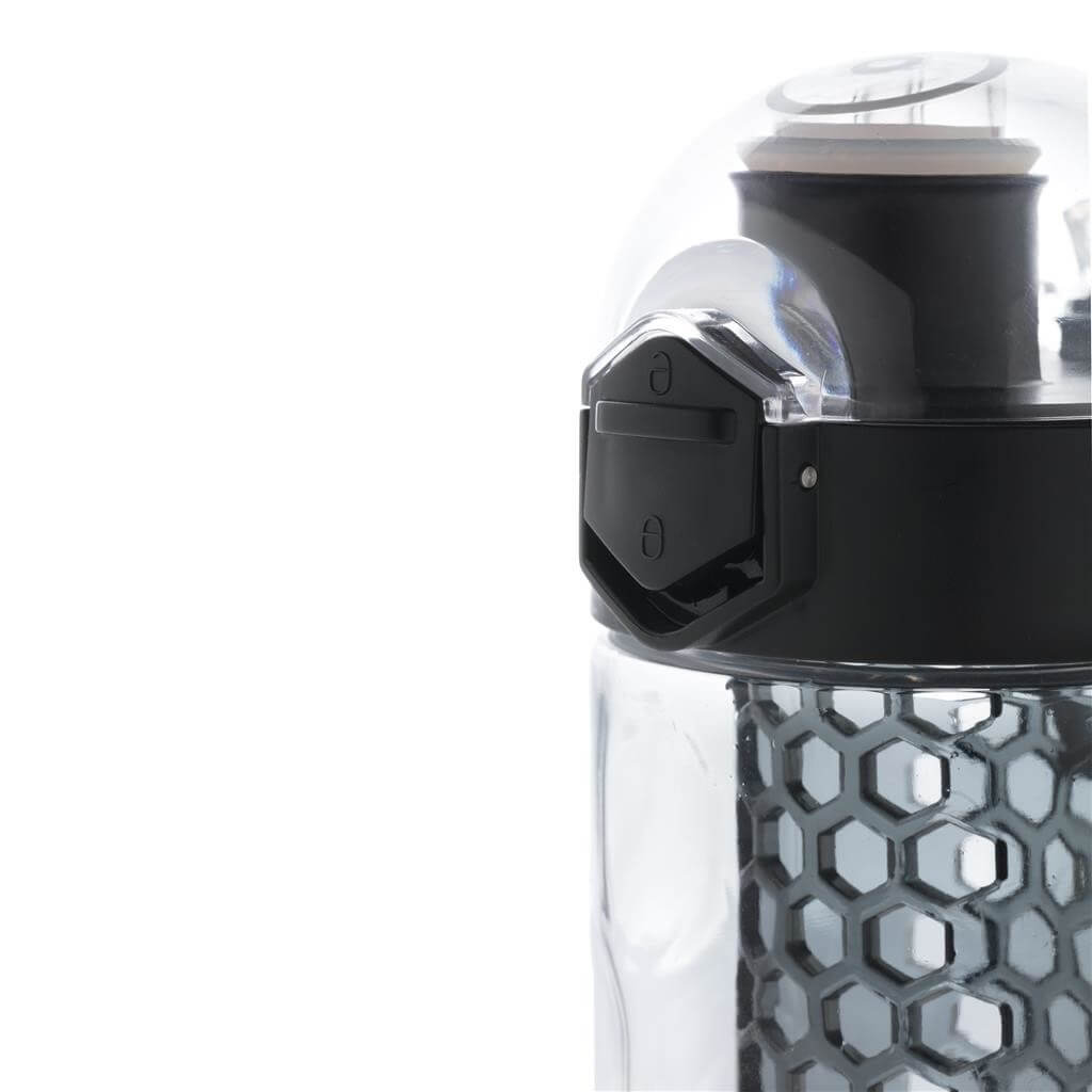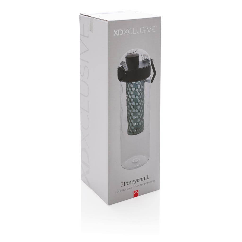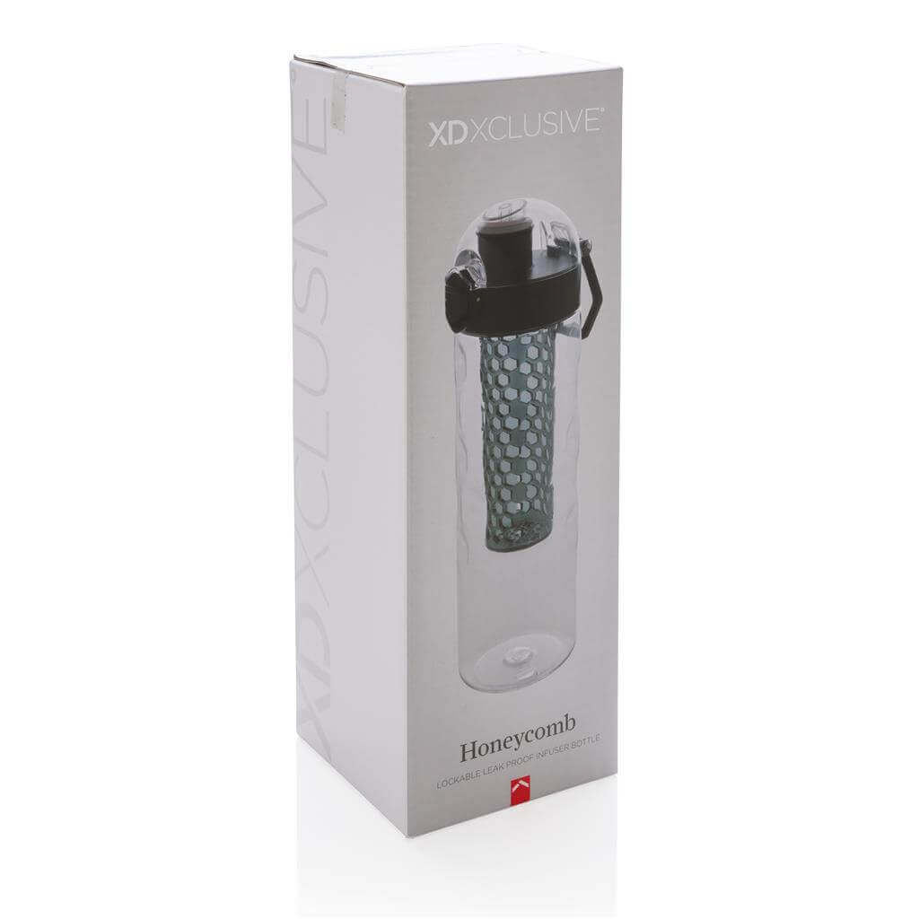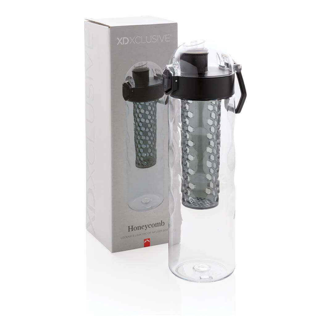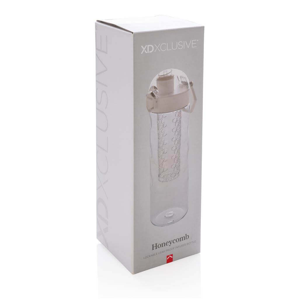 Praktická fľaša z odolného moderného Tritan s dizajnovými prvkami medových plástov pre pohodlné pitie jednou rukou. Otváranie viečka pomocou uzamykateľného mechanizmu na stlačenie, ktoré chránia proti náhodnému vyliatiu. Vrátane infuseru pre zdravé osvieženie nápojov ovocím a plastového pútka pre nosenie. BPA free, neabsorbuje pachy. Objem: 700ml. ochranný vzor®