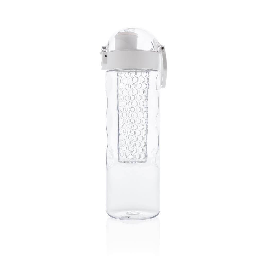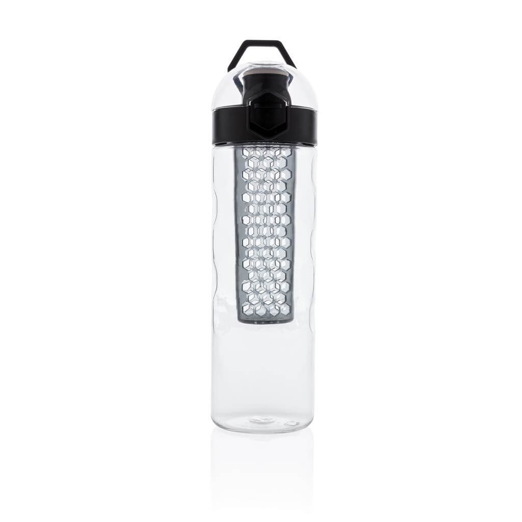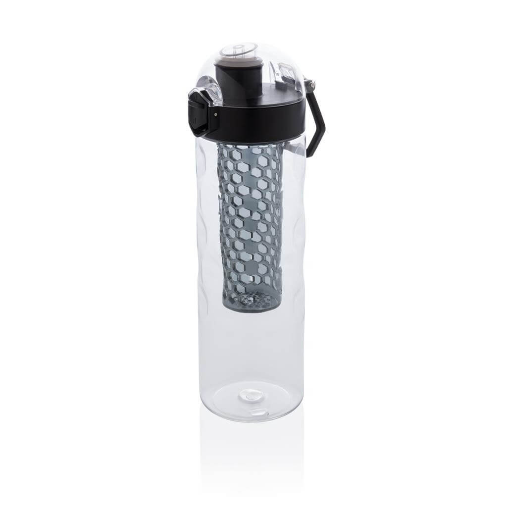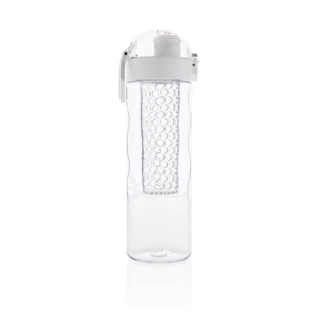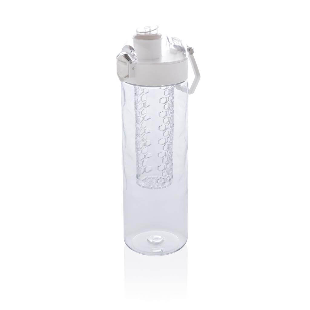 Praktická fľaša z odolného moderného Tritan s dizajnovými prvkami medových plástov pre pohodlné pitie jednou rukou. Otváranie viečka pomocou uzamykateľného mechanizmu na stlačenie, ktoré chránia proti náhodnému vyliatiu. Vrátane infuseru pre zdravé osvieženie nápojov ovocím a plastového pútka pre nosenie. BPA free, neabsorbuje pachy. Objem: 700ml. ochranný vzor®