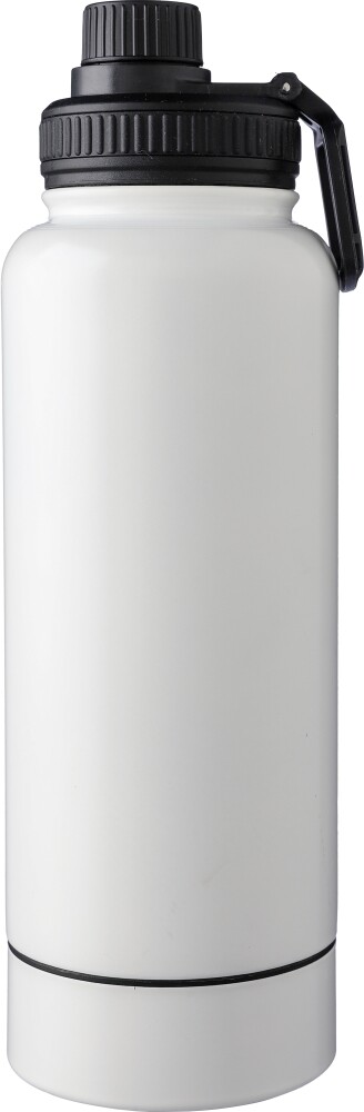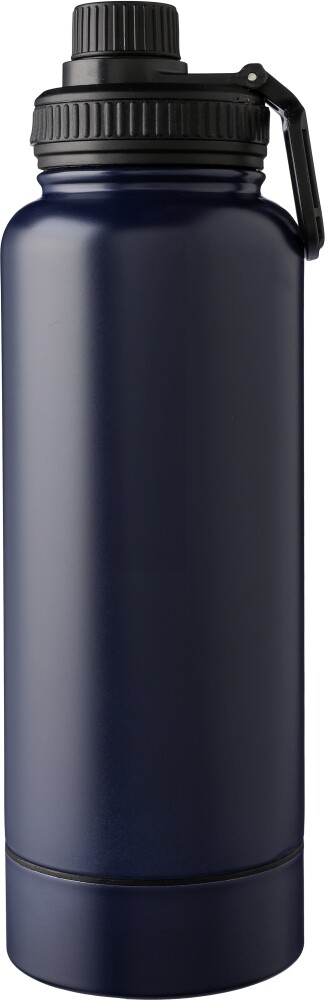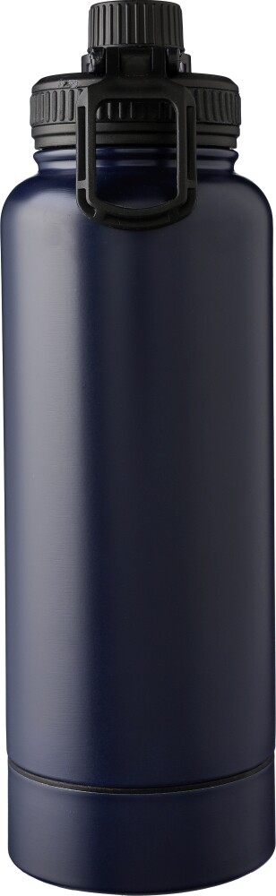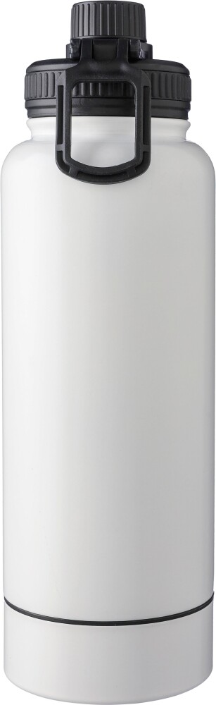 Nerezová dvojstenná fľaša na pitie (1000 ml). Obsahuje PP veko so skrutkovacím dávkovačom a pútkom na prenášanie. V spodnej časti je malá priehradka na skrutkovanie na uloženie. Vnútro je vyrobené z nerezovej ocele 304 a exteriér z nerezovej ocele 201. Jednotlivo balené v hnedej kartónovej krabici. Rozmery: 9 x 28,4 cm