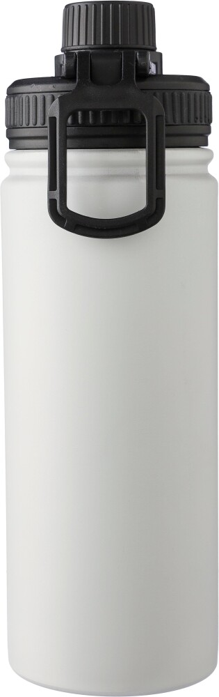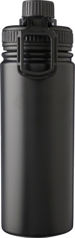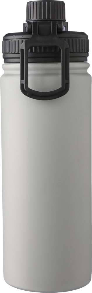 Nerezová dvojstenná fľaša na pitie (500 ml) s PP viečkom, PP skrutkovacou hubičkou a držadlom na prenášanie. Interiér je vyrobený z nerezovej ocele 304 a exteriér je z nerezovej ocele 201. Jednotlivo balené v hnedej kartónovej krabici. Rozmery: 7,8 x 26,9 cm