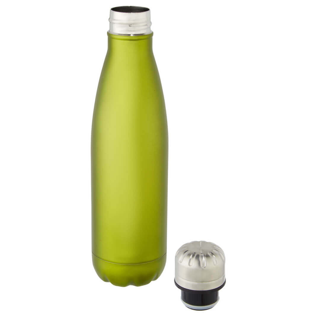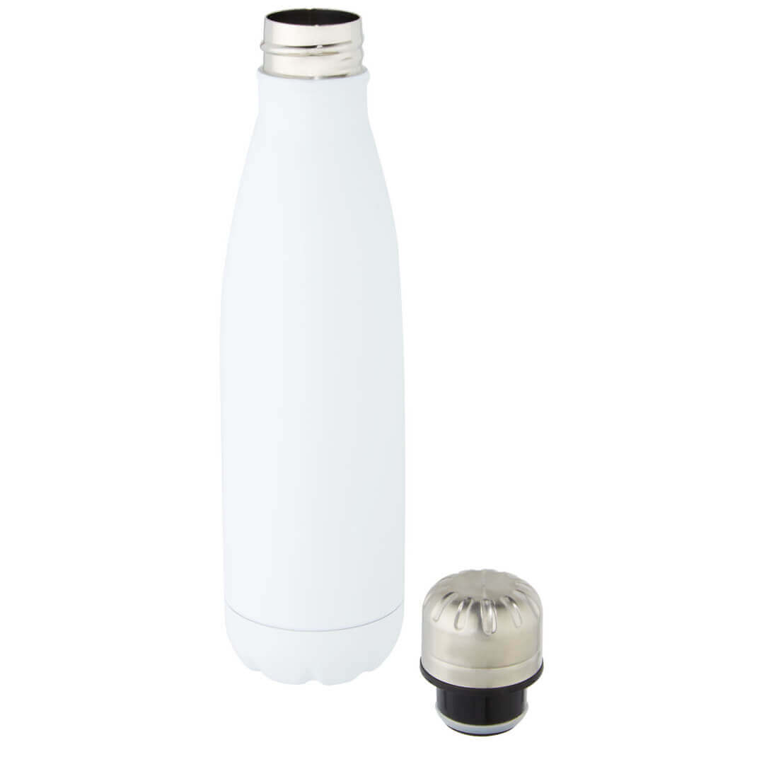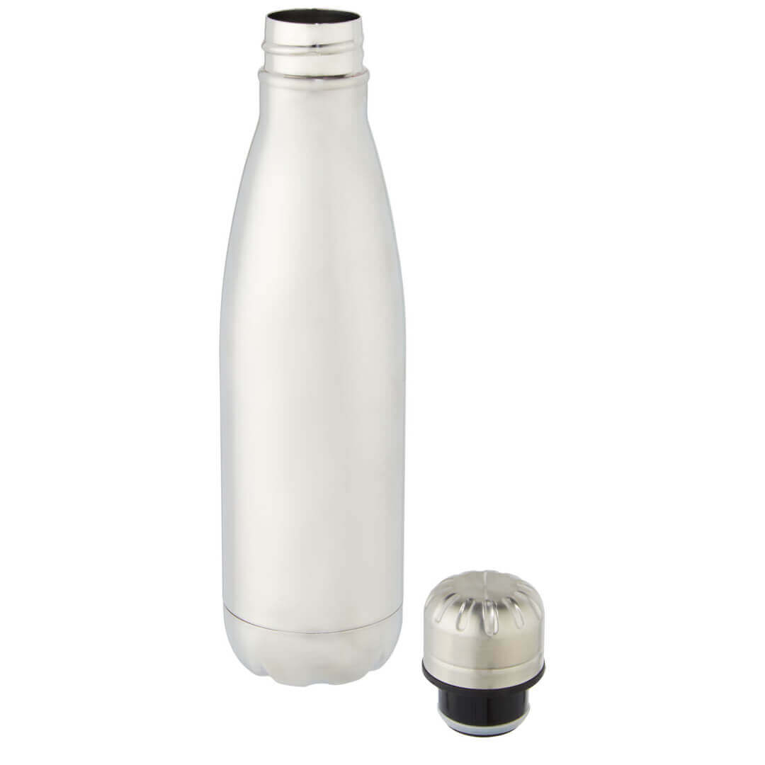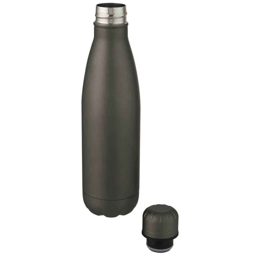 Fľaša z nerezovej ocele s vákuovou izoláciou a ikonickým dizajnom. Izolačná nerezová oceľ 18/8 udrží nápoje horúce alebo studené po dobu niekoľkých hodín. Testované a schválené podľa nemeckej legislatívy pre bezpečnosť potravín (LFGB), testované na obsah ftalátov podľa predpisov REACH. Táto elegantná fľaša na vodu sa zmestí do väčšiny držiakov na nápoje a je dokonalým reklamným predmetom. Objem je 500 ml. Dodáva sa v darčekovej krabičke z recyklovanej lepenky.