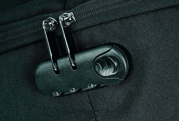 Bezpečnostný batoh s prvkami, ktoré sťažujú vykradnutie. Vstup do hlavného priestoru zabezpečuje zips, ktorý je umiestnený na chrbte batohu a je teda ťažko prístupný cudzej osobe. Tiahla zipsu sú zaistená kódovým zámkom. Batoh má tiež skrytú kapsu pre platobnú kartu alebo kľúče. Vo vnútornej časti je polstrovaný priestor pre notebook o veľkosti 15 "a tabliet s veľkosťou 10". Súčasťou je aj USB výstup vrátane USB kábla. V zadnej časti je pás pre pripevnenie k cestovnému kufra. Predná plocha je opatrená reflexným doplnkom. Objem batohu je 20 l. Materiál: 210D Polyester. Rozmer: 30 x 15 x 46 cm. Uhlíková stopa: gCO2 e13848