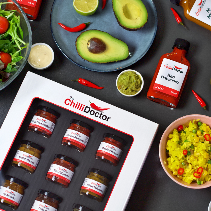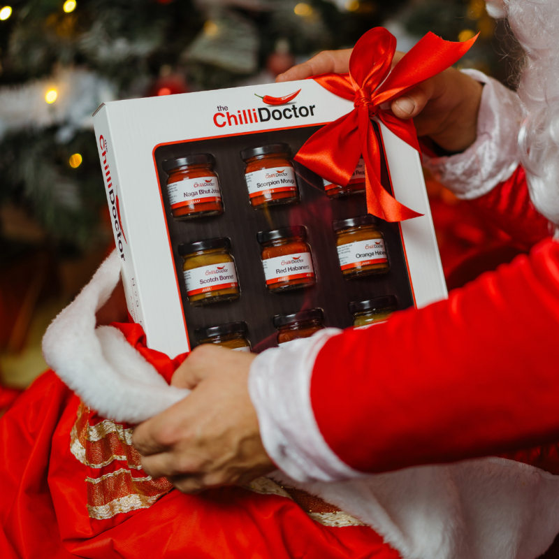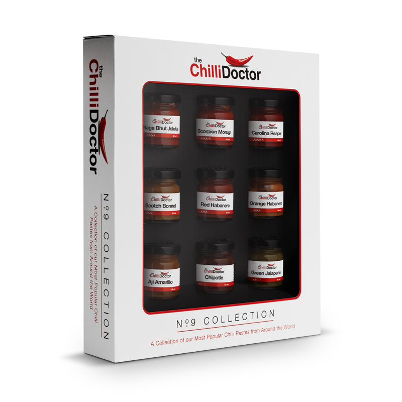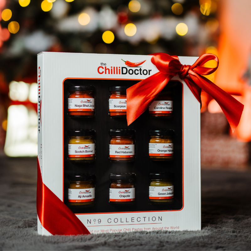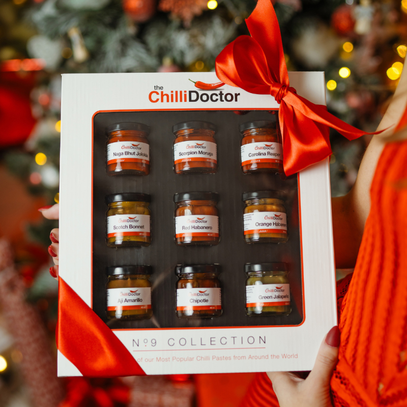 Darček, ktorým zaručene vykúzlite slzy v očiach. S exkluzívnou darčekovou krabičkou tekutých chilli mashov sa zoznámite s našimi 9 najlepšími chilli produktmi. Degustačné balenie deviatich 40 ml fľaštičiek je ako bonboniéra plná nových chutí, farieb a štipľavostí. Ochutnajte naše najpredávanejšie odrody, od ľahko hrejivého Aji Amarilo, cez poctivo pálivé Habanero až po extrémne Trinidad Scorpion alebo Carolina Reaper.