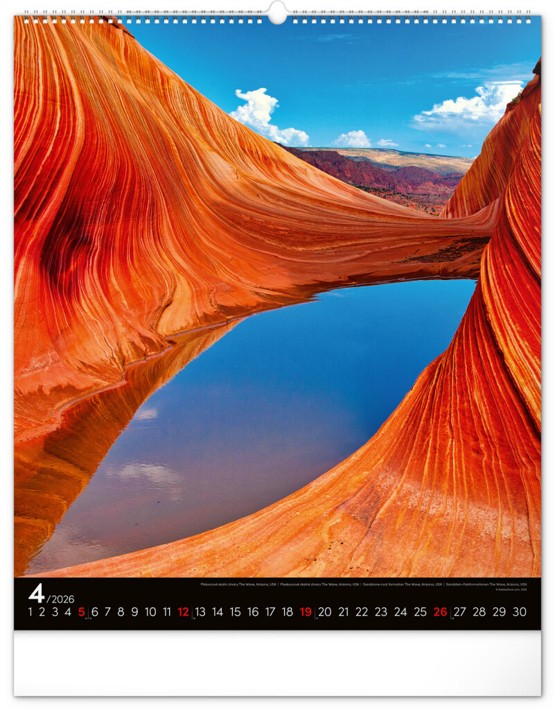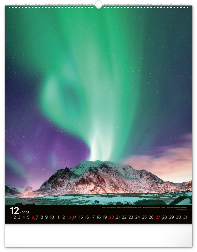 Kalendár z kolekcie Platinum Collection obsahuje veľkoformátové fotografie prírodných scenérií z exotických krajín. Zaveste si na stenu okno do sveta!Fotografie islandskej prírody alebo arménskeho kláštora dopĺňa univerzálne kalendárium na čiernom pozadí.