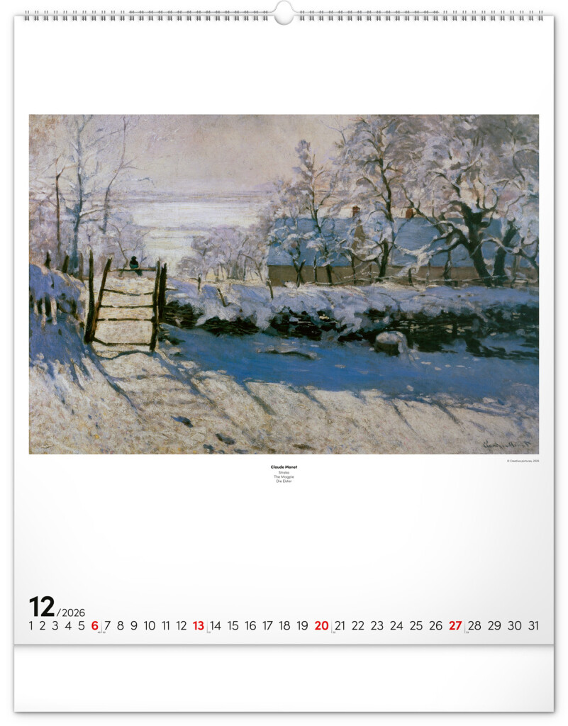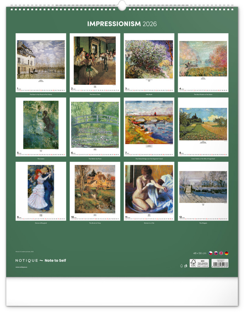 Edgar Degas, Paul Cézanne, Auguste Renoir a ďalší svetoznámi impresionickí maliari sú zastúpení v tomto veľkoformátovom kalendári s reprodukciami ich obrazov. Kalendár obsahuje jednoduché univerzálne kalendárium a popisky k jednotlivým obrazom v štyroch jazykoch.