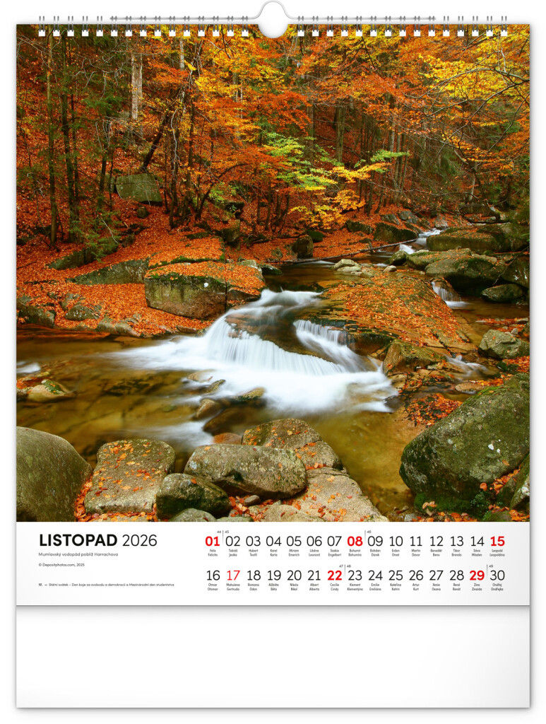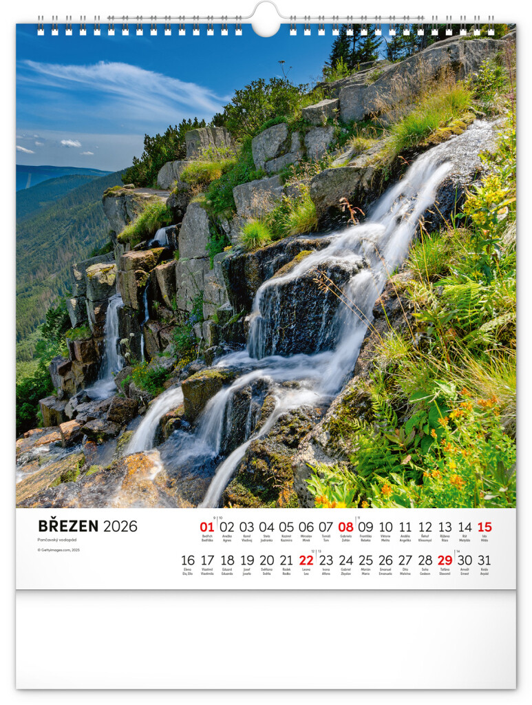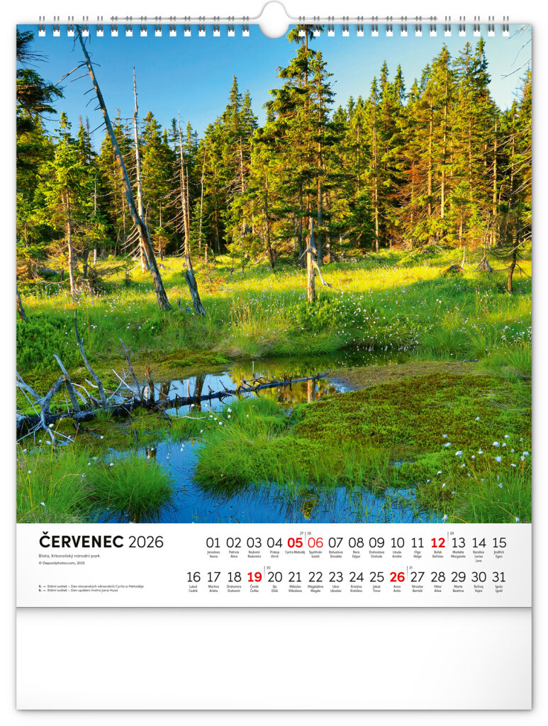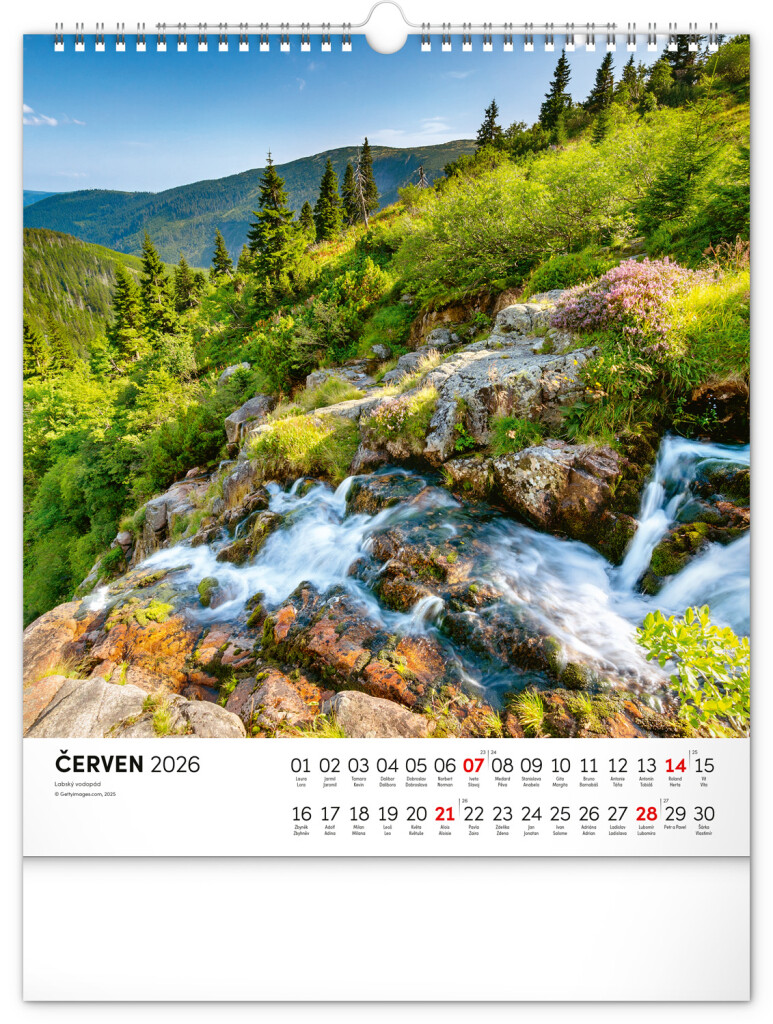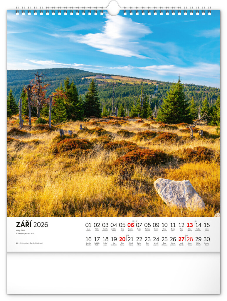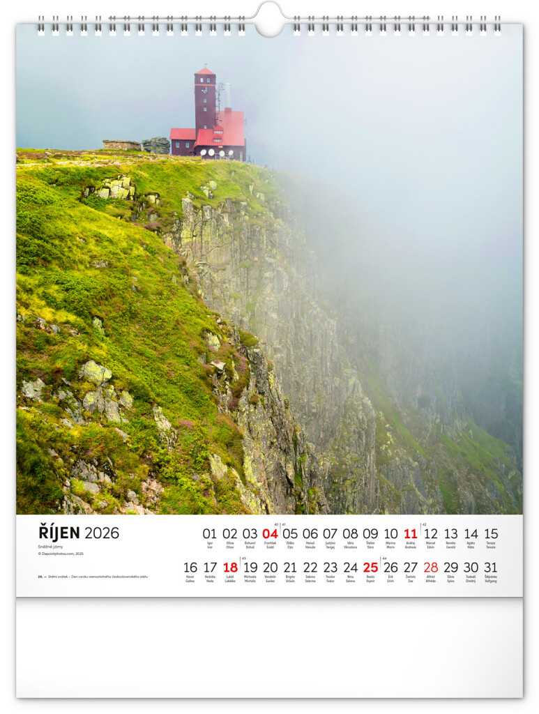 Dvanásť pôsobivých snímok zachytávajúcich krásu Krkonôš v štvorcovom formáte. Fotografie sú doplnené jednoduchým kalendáriom na bielom pozadí.