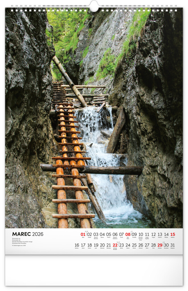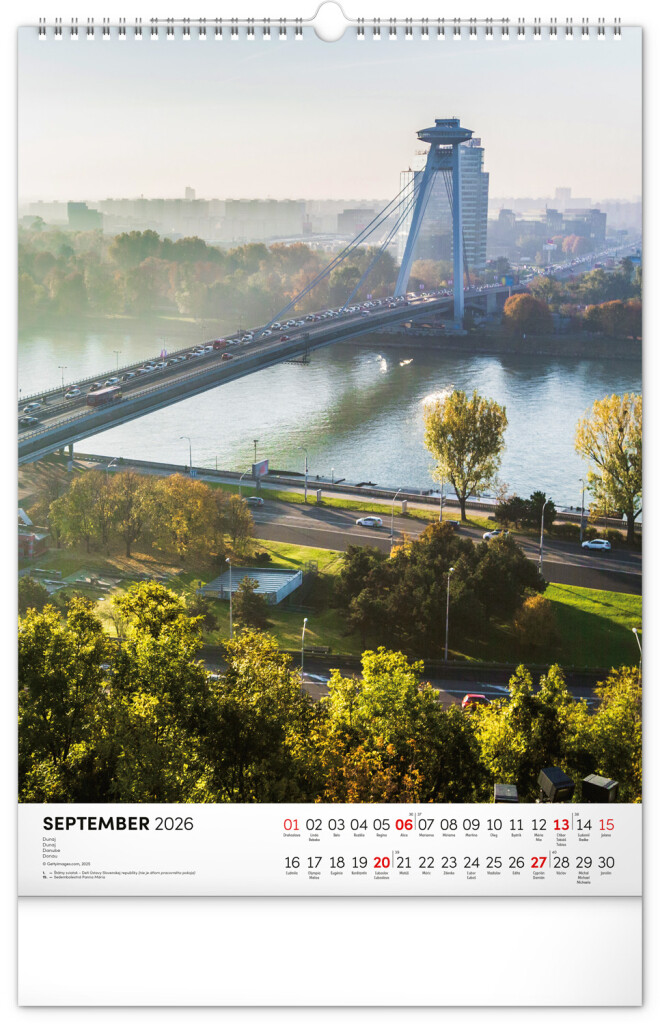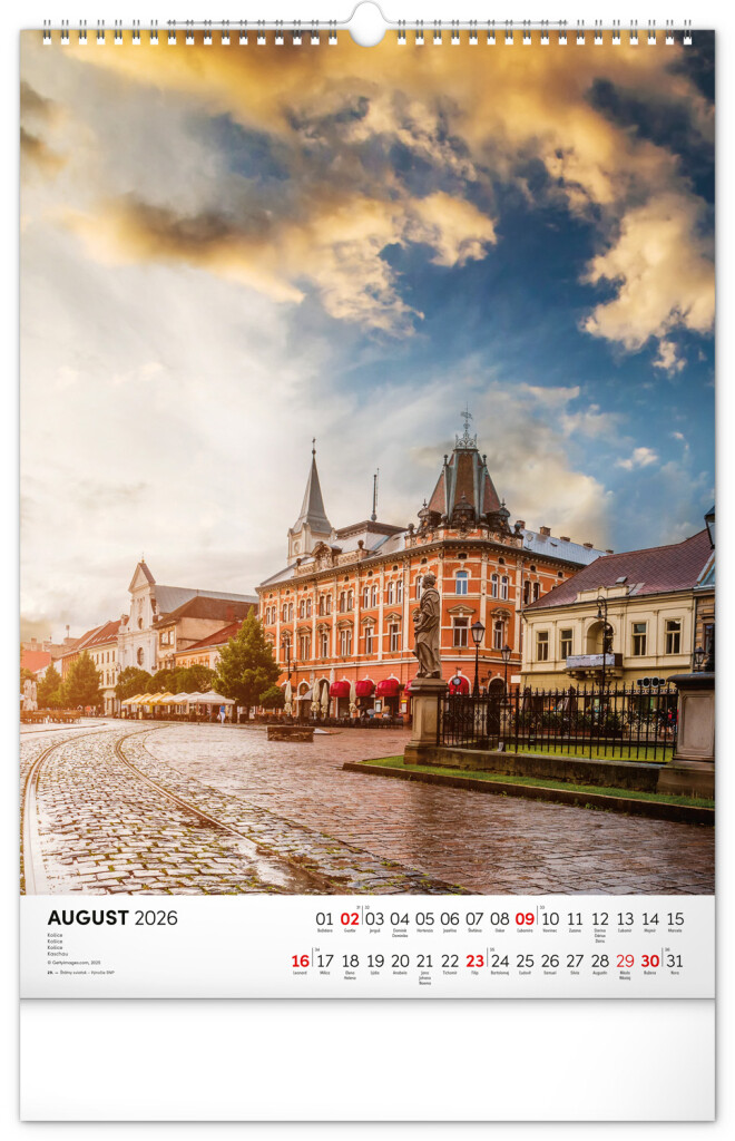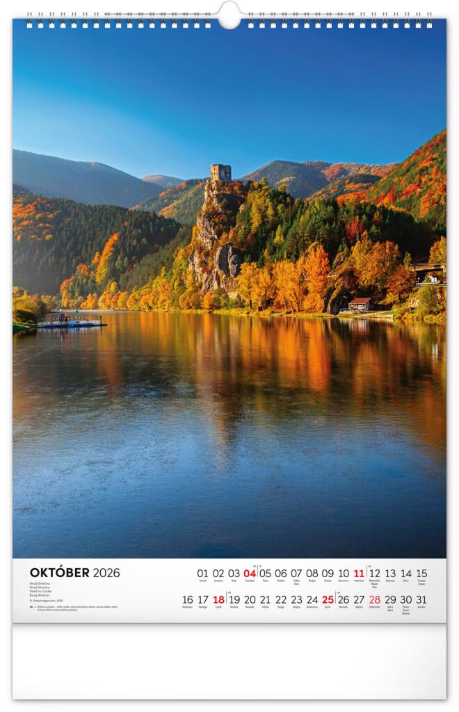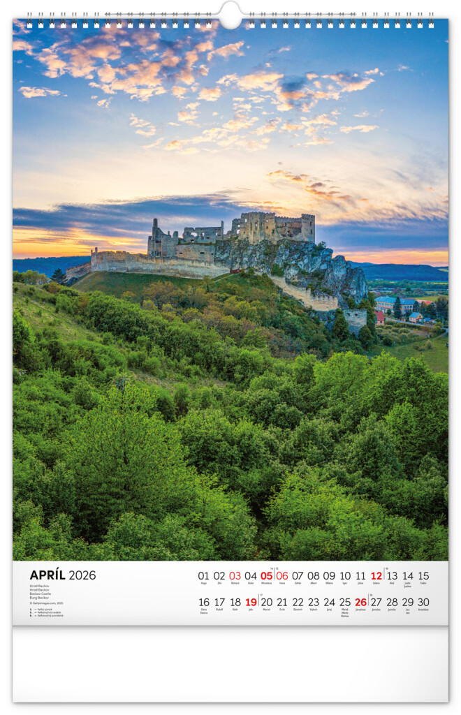 Kalendár obsahuje fotografie architektonických aj prírodných pamiatok z celého Slovenska. Kalendár výškového formátu obsahuje slovenské kalendárium s menami, sviatkami, fázami mesiaca a trojmesačným prehľadom na každý mesiac. S priestorom na poznámky.