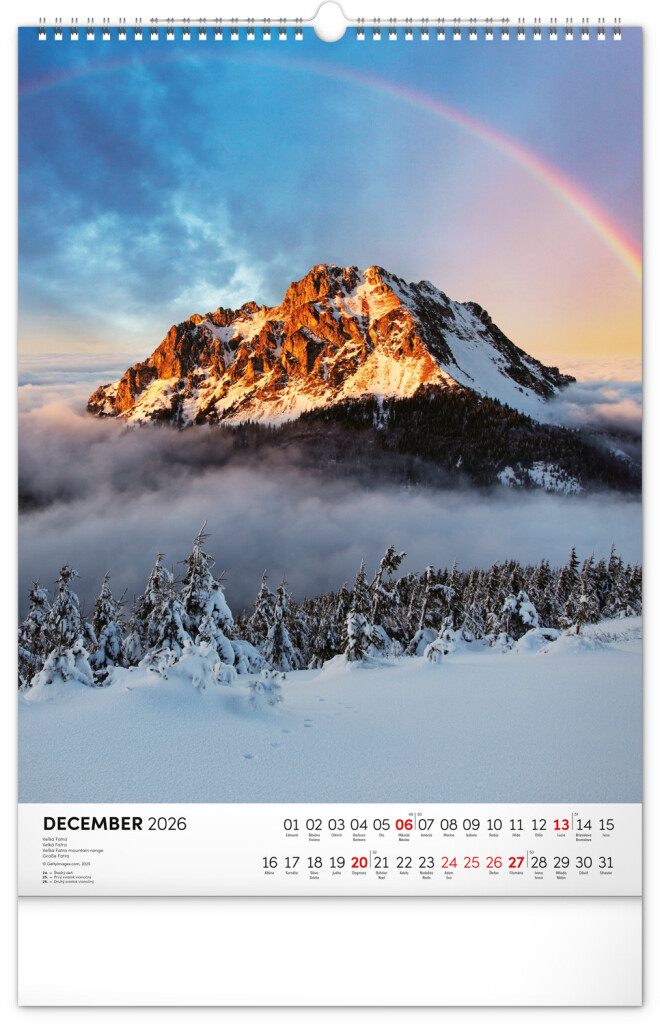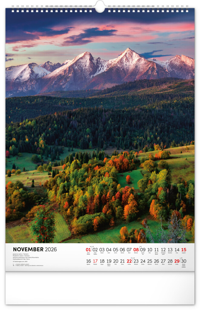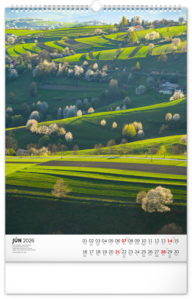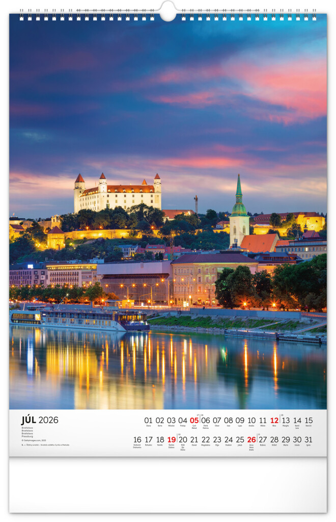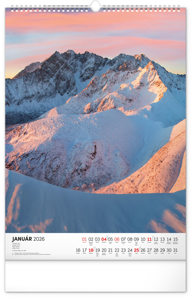 Kalendár obsahuje fotografie architektonických aj prírodných pamiatok z celého Slovenska. Kalendár výškového formátu obsahuje slovenské kalendárium s menami, sviatkami, fázami mesiaca a trojmesačným prehľadom na každý mesiac. S priestorom na poznámky.