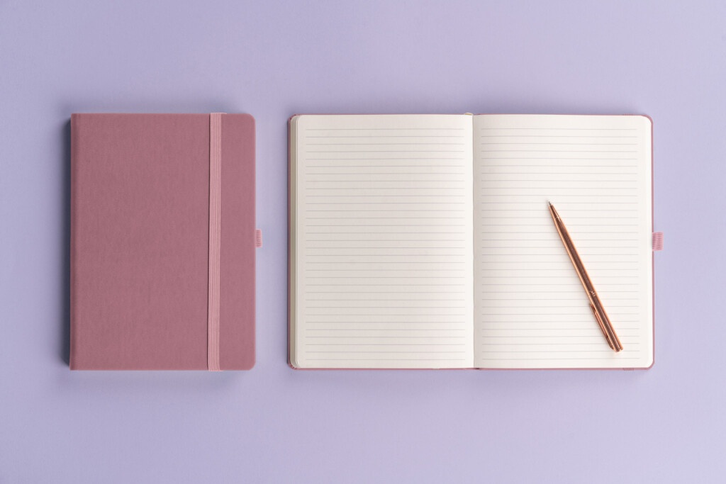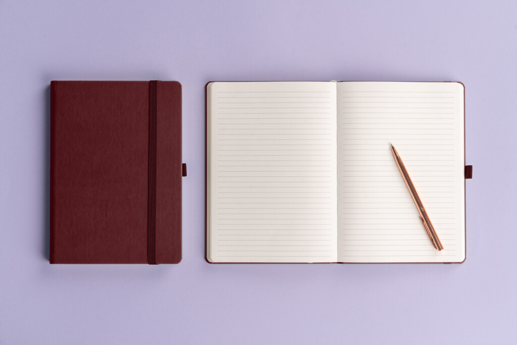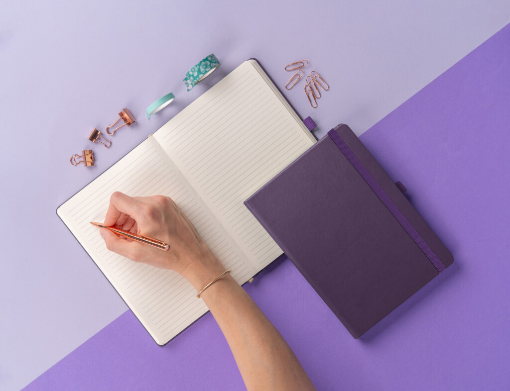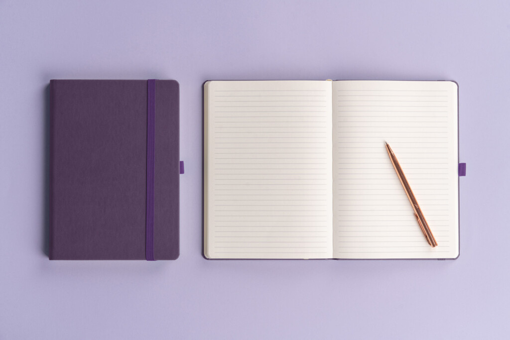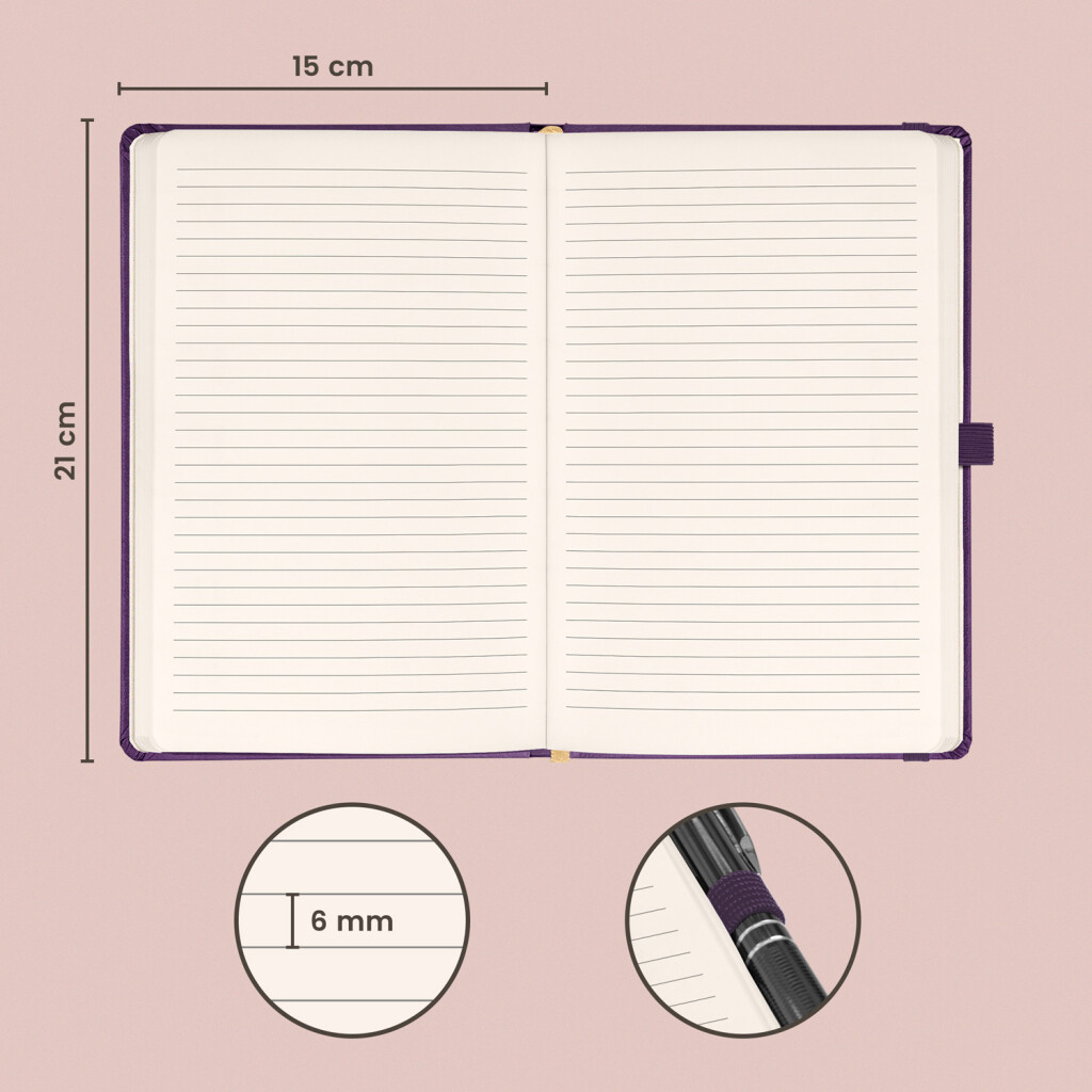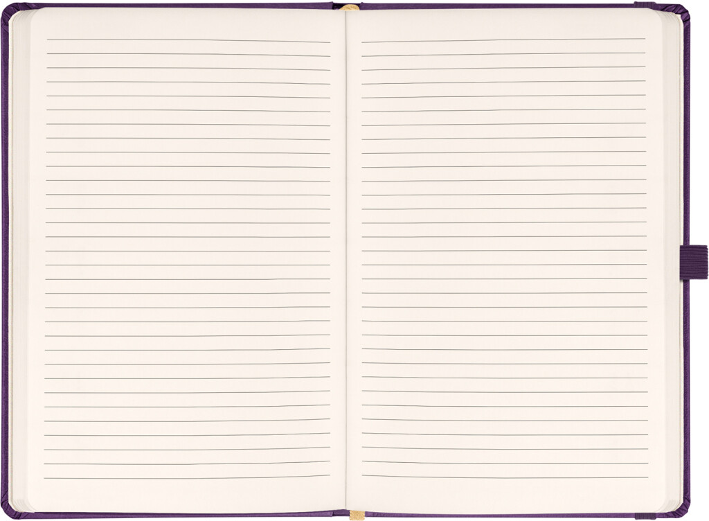 Linajkový notes Aprint Neo 2025 vo fialovom prevedení. Klasika i elegancia, najžiadanejší povrch, na ktorý je možnosť vyraziť firemné logá s jemnou štruktúrou.