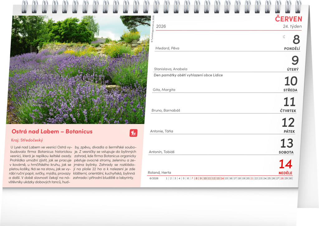 Dochádzajú vám nápady a fantázie, kam vyraziť na výlet? V našom stolnom kalendári nájdete 53 tipov pre vaše nové dobrodružstvá. Ideálny a praktický kalendár, ktorý bude pomocníkom pre všetkých víkendových výletníkov. Stačí si len vybrať cieľ vašej ďalšej cesty. Fotografie z jednotlivých miest dopĺňa slovenské týždenné kalendárium.