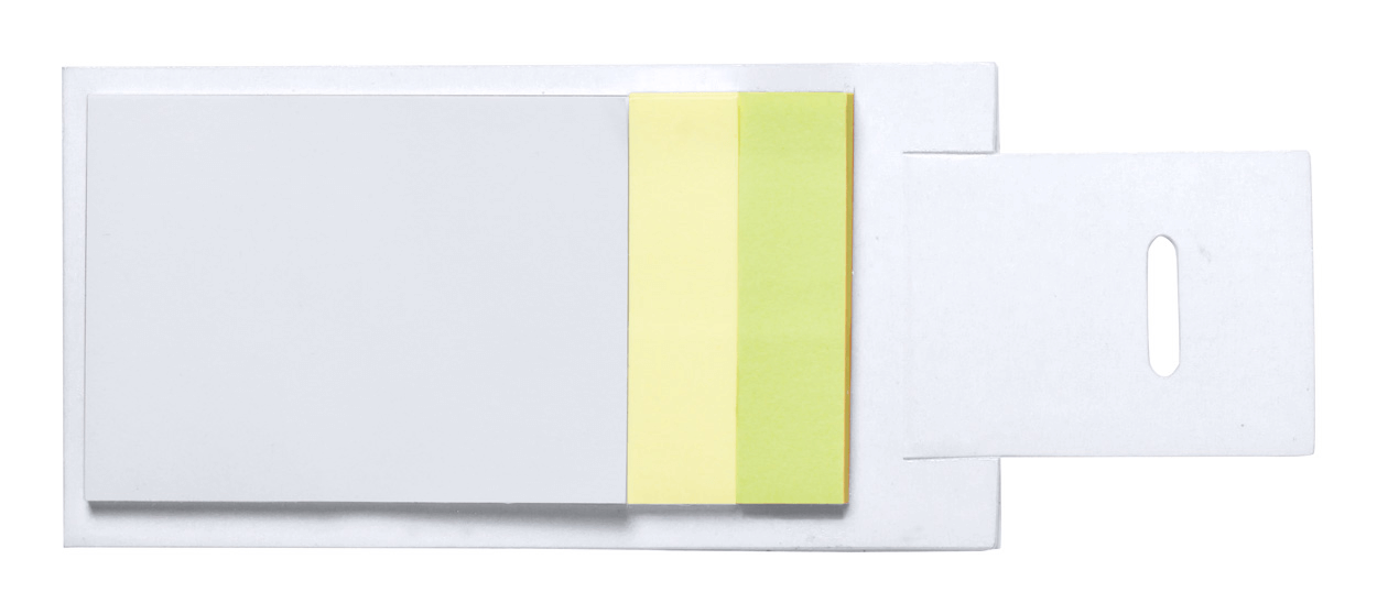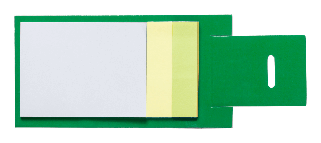 Blok so samolepiacimi lístkami (2 veľkosti - 30 veľkých a 50 malých) v papierových doskách.
