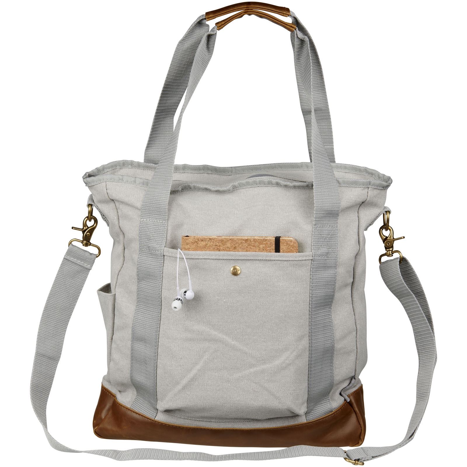 Taška Harper z bavlneného plátna na zips. Táto trendy odnoska z bavlneného plátna, uzatvárateľná na zips, má otvorený hlavný priestor so vzorovanou podšívkou a predné vrecko so zapínaním na cvok. Vinylom spevnené dno a ucha. Na zadnej strane popruh na pojazdný kufor. Ramenný popruh s nastaviteľnou dĺžkou. Súčasť kolekcie z bavlneného plátna Field & Co.® Harper. Bavlnené plátno.