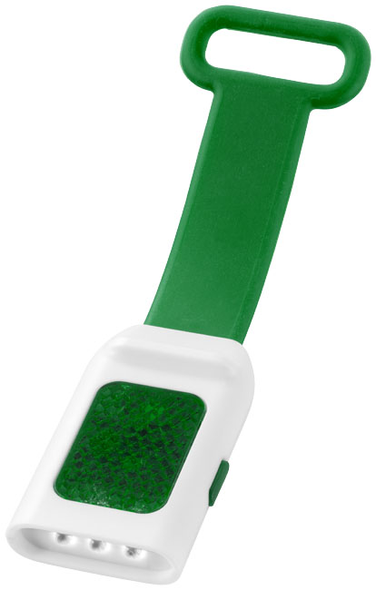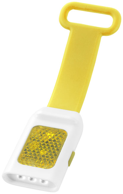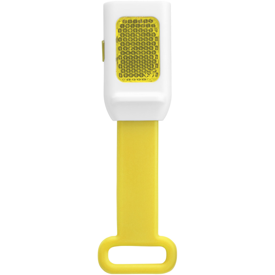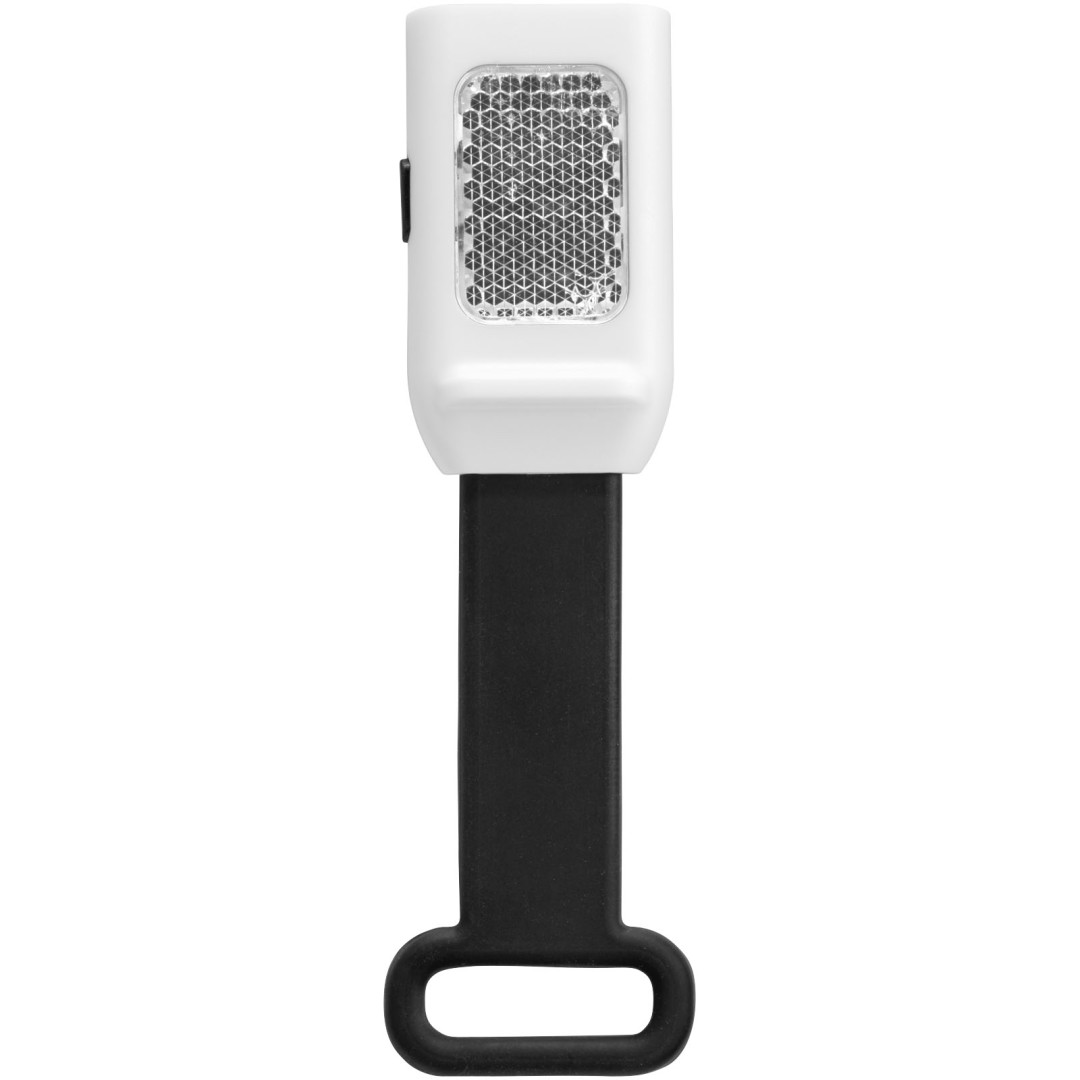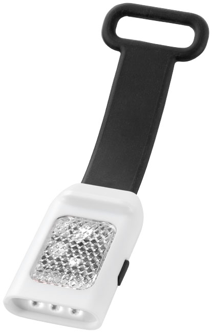Odrazka a svietidlo Seemii. Vonkajšie odrazové LED svetlo s 3 jasnými bielymi LED svetlami a s funkciou stáleho či blikajúceho LED svetlá. Pružný silikónový pásik pre jednoduché pripevnenie k bicyklu alebo taške. Vrátane batérie. PS plast.
