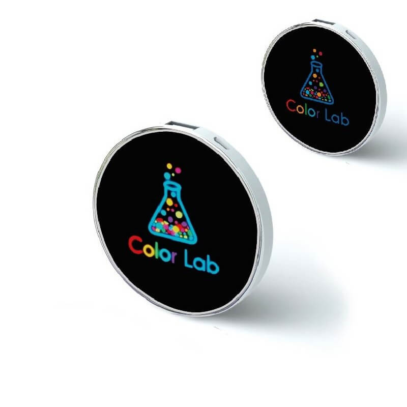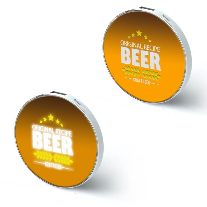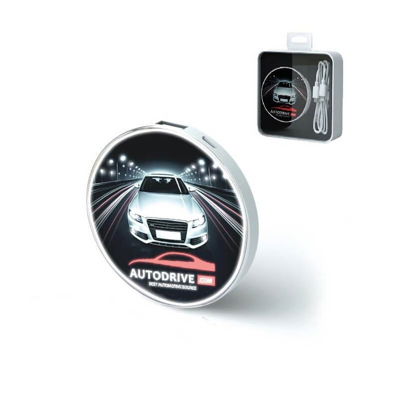Tenká POWER BANK (EXTERNÁ NABÍJAČKA), 4000 alebo 5000 mAh. Kruhový tvar, veľký priestor pre plnofarebnú (CMYK) potlač. Rovnako je možné aplikovať unikátny LED LOGO, prípadne kombinovať obrázok s LED logom, kedy sa časť obrázku (napr. logo) po pripojení rozsvieti a skvele tak vynikne reklamné oznámenie. Nabitie Power Bank zaistíte cez USB konektor počítača (prípadne sieťový adaptér) a cez micro USB, popr. iný konektor následne nabijete Váš mobilný telefón alebo iné zariadenie. Plne nabitá Power Bank zaistí 2 - 4 nabitia mobilného telefónu, podľa kapacity batérie telefónu a zvolenej kapacity Power bank. Nabíja iPhone, iPad, Smartphone mobily, tablety, MP3, iPod, kamery, e-cigarety a pod.