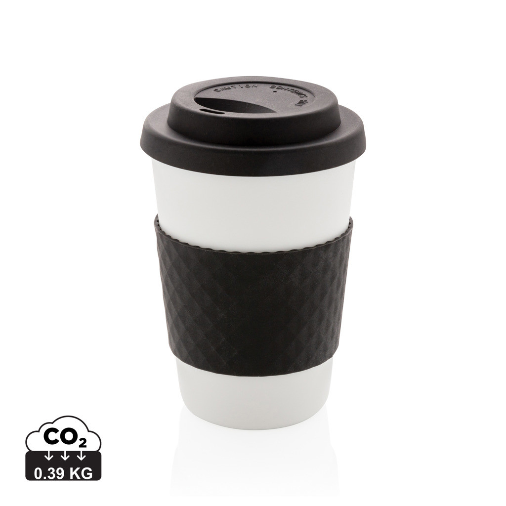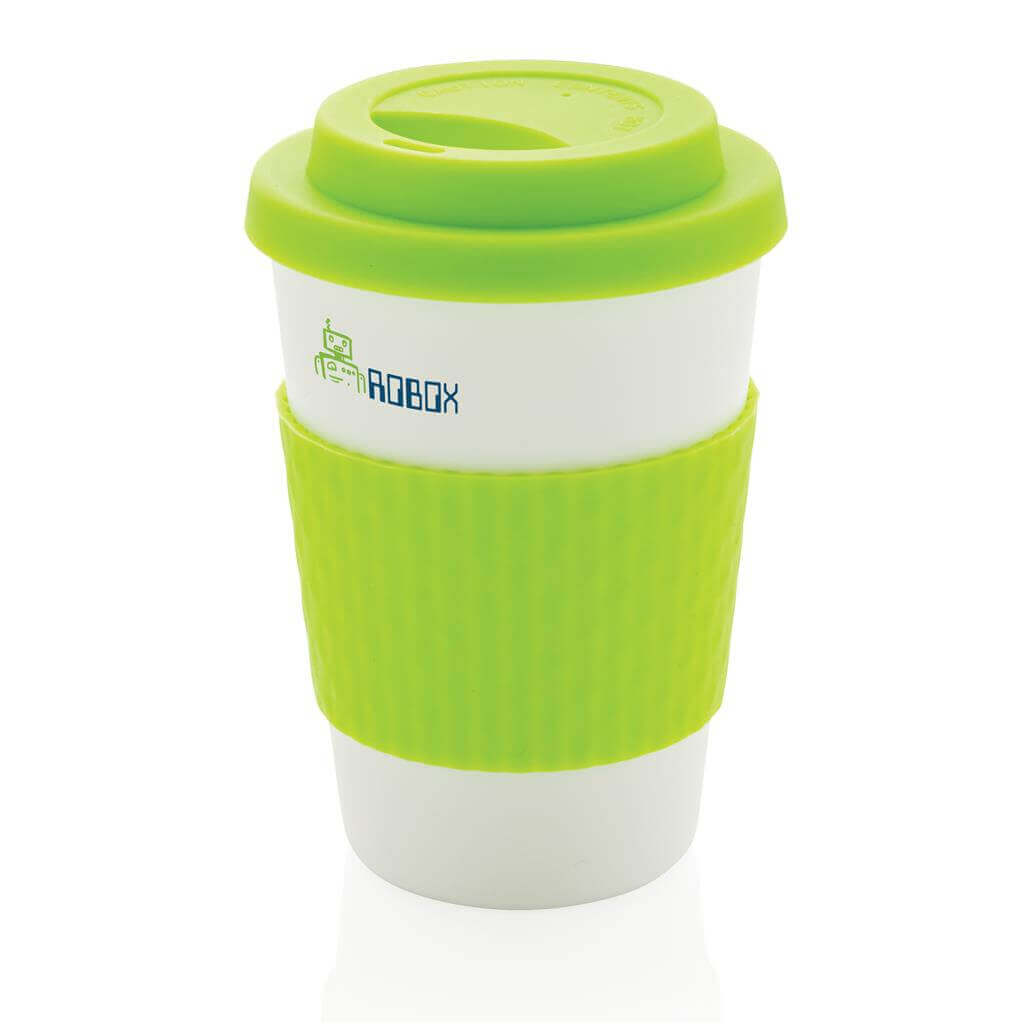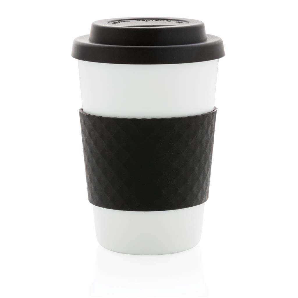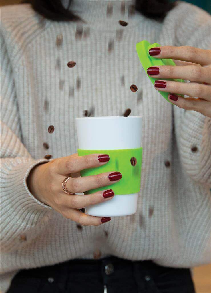 Stop jednorazovým kelímkom. Opakovane použiteľné hrnčeky nezaťažujú životné prostredie a prináša príjemnejší pôžitok z konzumovaného nápoja. Ľahký, napriek tomu veľmi odolný hrnček vyrobený zo 100% recyklovateľného PP. Bezpečný pre vriacej nápoje. Silikónové viečko a úchop. Vhodný do mikrovlnky i umývačky riadu. Pasuje pod väčšinu kávovarov. Objem: 270ml.