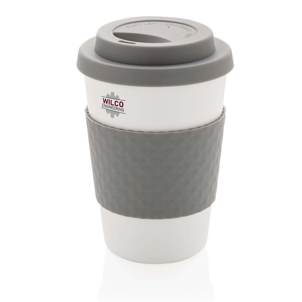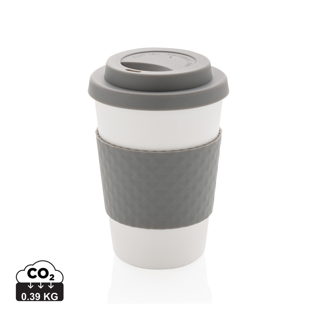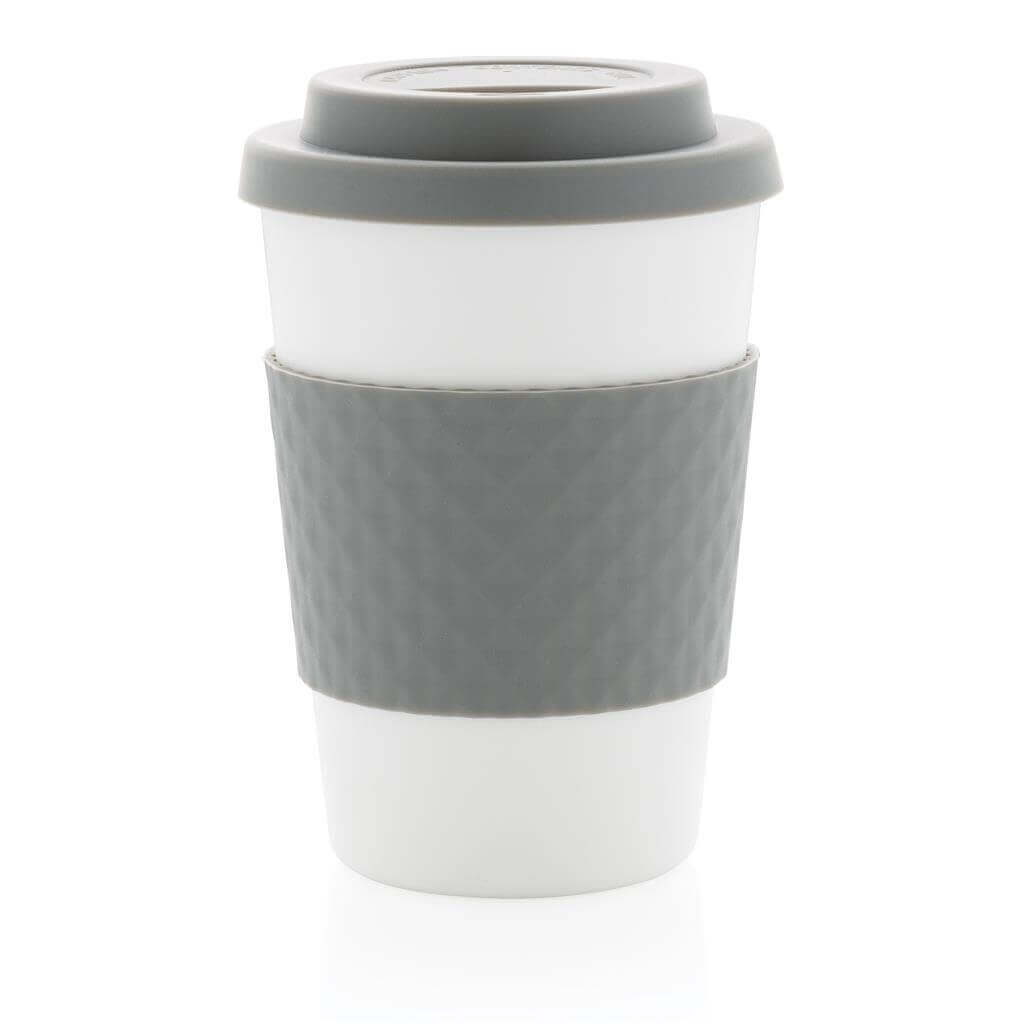 Stop jednorazovým kelímkom. Opakovane použiteľné hrnčeky nezaťažujú životné prostredie a prináša príjemnejší pôžitok z konzumovaného nápoja. Ľahký, napriek tomu veľmi odolný hrnček vyrobený zo 100% recyklovateľného PP. Bezpečný pre vriacej nápoje. Silikónové viečko a úchop. Vhodný do mikrovlnky i umývačky riadu. Pasuje pod väčšinu kávovarov. Objem: 270ml.
