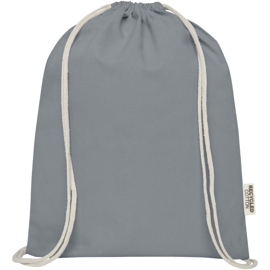 Batoh so šnúrkou Oregon vyrobený zo 100% recyklovanej bavlny s certifikáciou GRS sa dá ľahko venovať ako darček v rámci propagácie vašej značky alebo marketingovej kampane. Tento ľahký batoh je cenovo dostupný, ľahko sa nosí na chrbte alebo na ramene a ponúka dostatok priestoru na pridanie loga alebo ďalších odkazov. Sťahovacia šnúrka uľahčuje otváranie a zatváranie a bavlnený materiál o gramáži 140 g/m² je pevný a odolný. Veľká hlavná priehradka s bavlneným šnúrkovým uzáverom. Nosnosť do 5 kg.