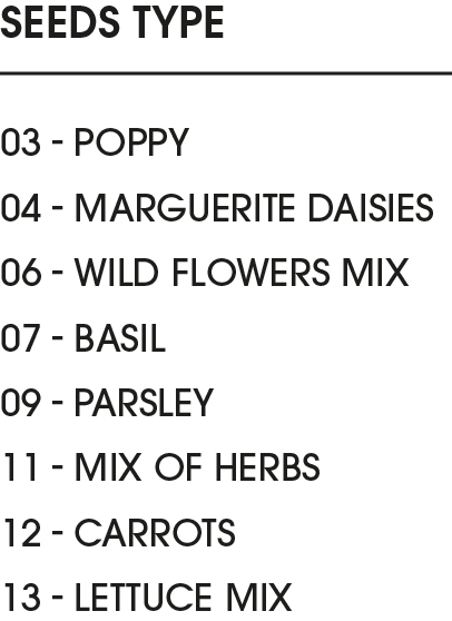 Vyrobené v Európe - Pestovateľský osivový papier vyrobený z použitého spotrebiteľského papiera. Po použití ho stačí zasadiť do pôdy a vyrastú vami vybrané kvety, bylinky alebo zelenina!