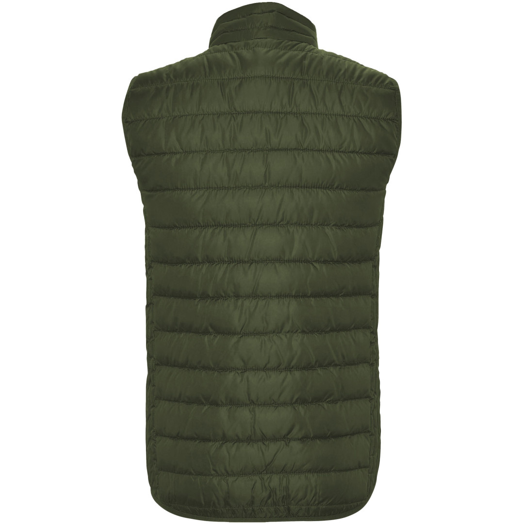 Pánska vesta s páperovým efektom. Zipsy s obráteným efektom v zodpovedajúcom odtieni. Dve predné vrecká na zips. Podšívka v kontrastnej farbe. Elastický spodný lem v zodpovedajúcom odtieni. Súčasťou je taštička na zloženie odevu. Ľahký odev s možnosťou zloženia. Dámska verzia má priliehavý strih. Nepremokavá. Odolná voči vetru. Model meria 185 cm a má na sebe veľkosť M.