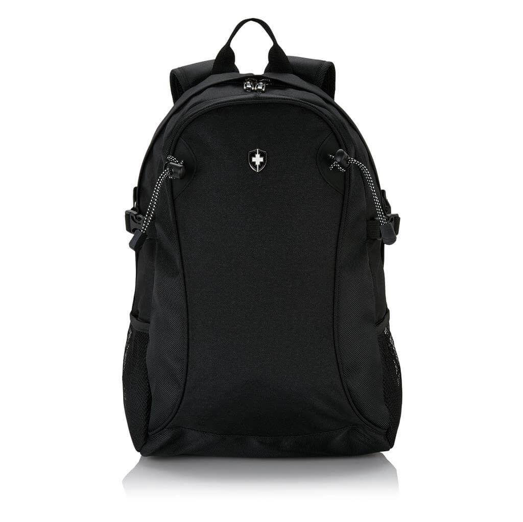 Outdoorový batoh z polyesteru 600D a 1680D s jedným veľkým hlavným oddielom. Pohodlná polstrovaná zadná časť. Bočné sieťované vrecká pre fľašu na vodu alebo ďalšie nevyhnutnosti. Bez PVC.